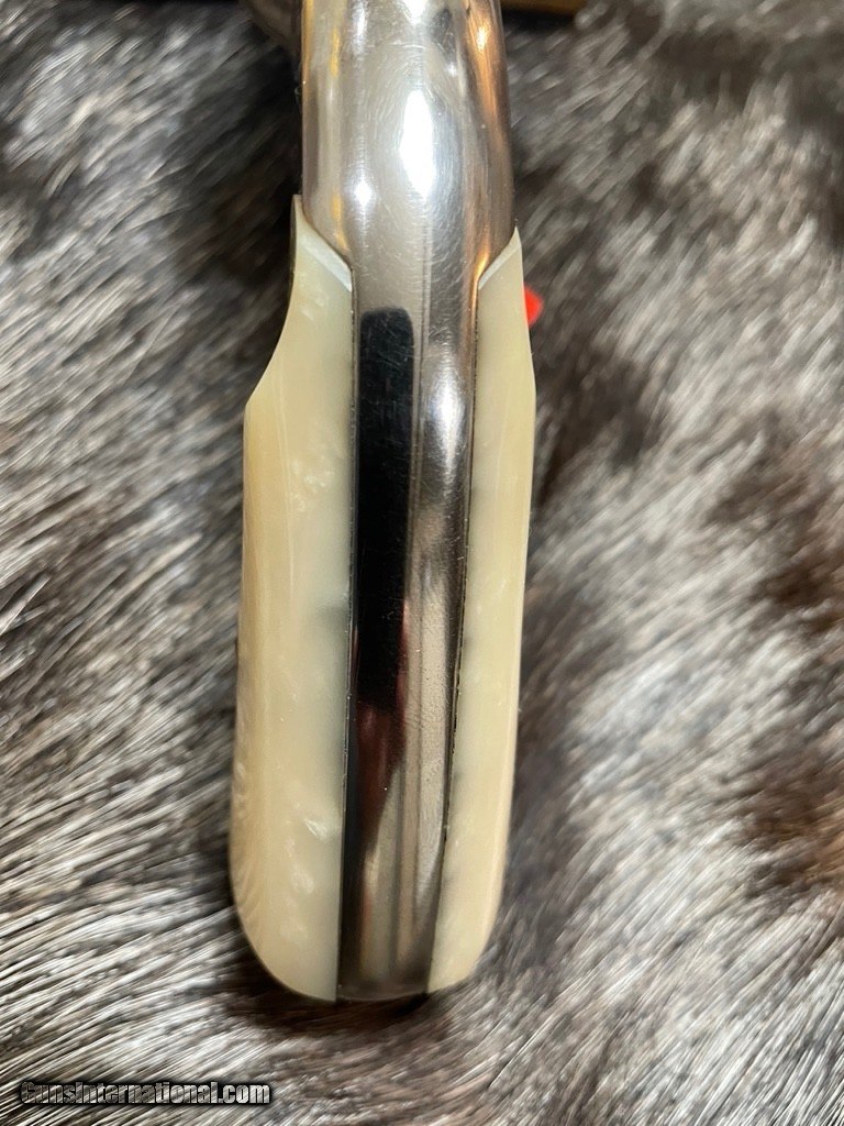 SOLD Handgun Caliber: .45 Colt Manufacturer: Uberti Model: Schofield Nickel w/ Pearl Serial Number: F21669 Barrel Length: 3.5 Condition: New |