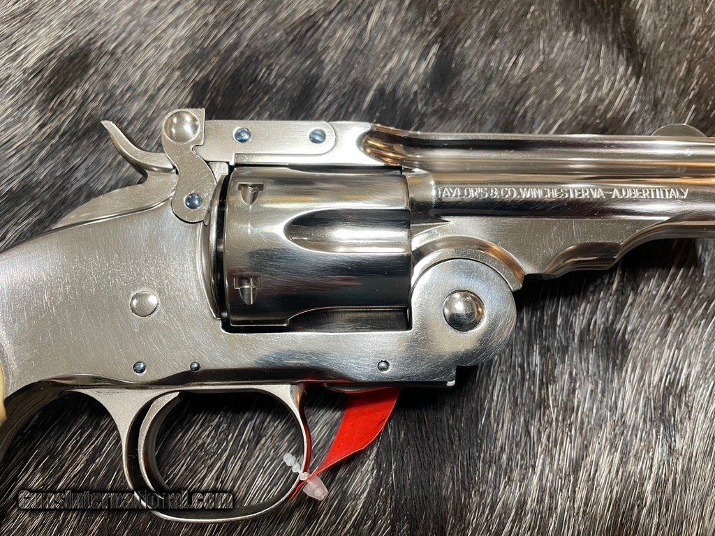 Description: NEW UBERTI SCHOFIELD 45 COLT REVOLVER WITH NICKEL FRAME, PEARL-COLORED GRIPS, AND 3.5" BARREL - LAYAWAY AVAILABLE FEATURES OF THIS FANCY SCHOFIELD INCLUDE: