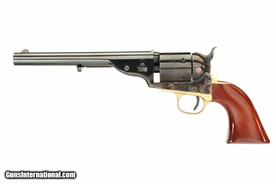 Description: Manufacturer: Taylor's & Company / Uberti Model: 1851 Navy Open Top Revolver SKU: REV/0922 Caliber: .45 Colt Capacity: 6 Round Cylinder Barrel Length: 7.5" Overall Length: 13.03" Weight: 2.51 lbs Frame: Case Hardened Forged Steel Finish: Blued Finish with Case Hardened Frame Brass Backstrap and Trigger Guard Grips: 2-Piece Walnut Sights: Blade Front, Rear Sight on Back of Barrel All items are factory new in box unless otherwise stated. Based on the information available to us, the above specifications describe this item to the best of our knowledge. For further information, please contact or visit the manufacturer's . SOLD |