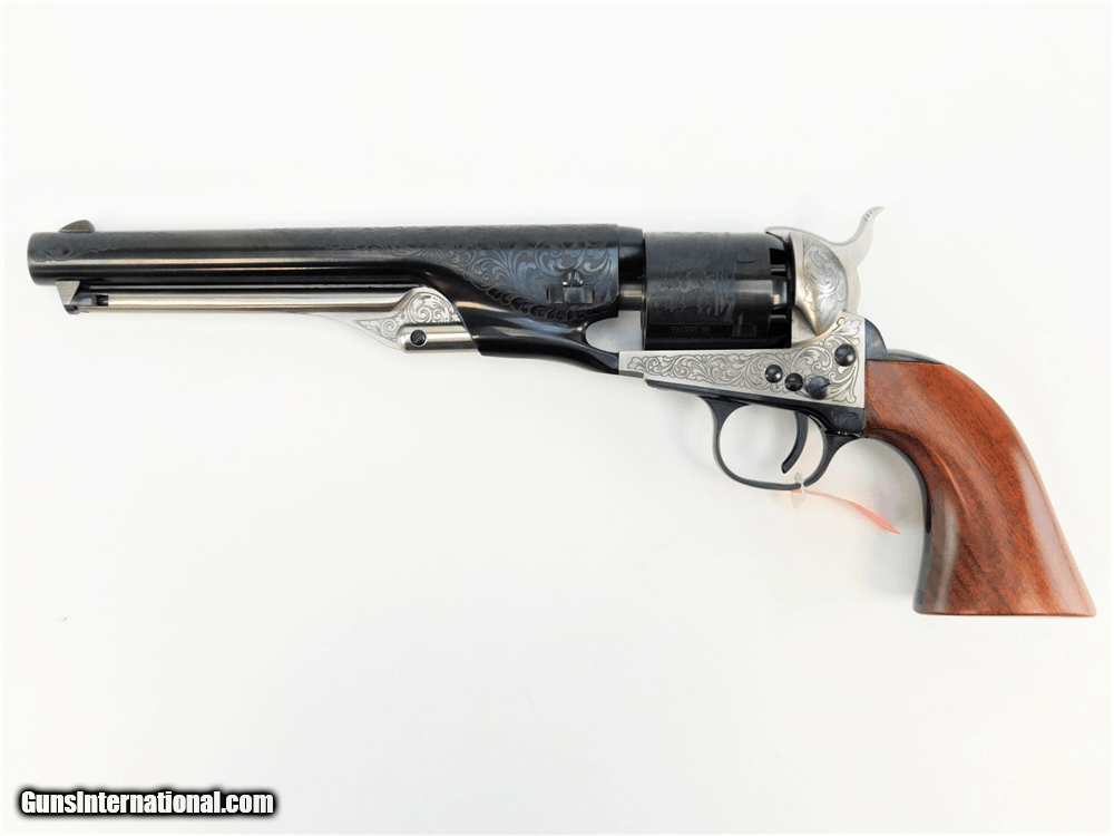 Description: Manufacturer: Taylor's & Co. Model: 1861 Navy Coin Finish Buffalo Bill SKU: 550364 Caliber: .36 Capacity: 6 Rounds Barrel Length: 7.5" Octagonal, Blued Cylinder: Roll Engraved Frame: Forged Steel Engraved Grips: Walnut Sights: Blade Front Overall Length: 13" Weight: 2.61 lbs All items are factory new in box unless otherwise stated. Based on the information available to us, the above specifications describe this item to the best of our knowledge. For further information, please contact or visit the manufacturer's . SOLD |