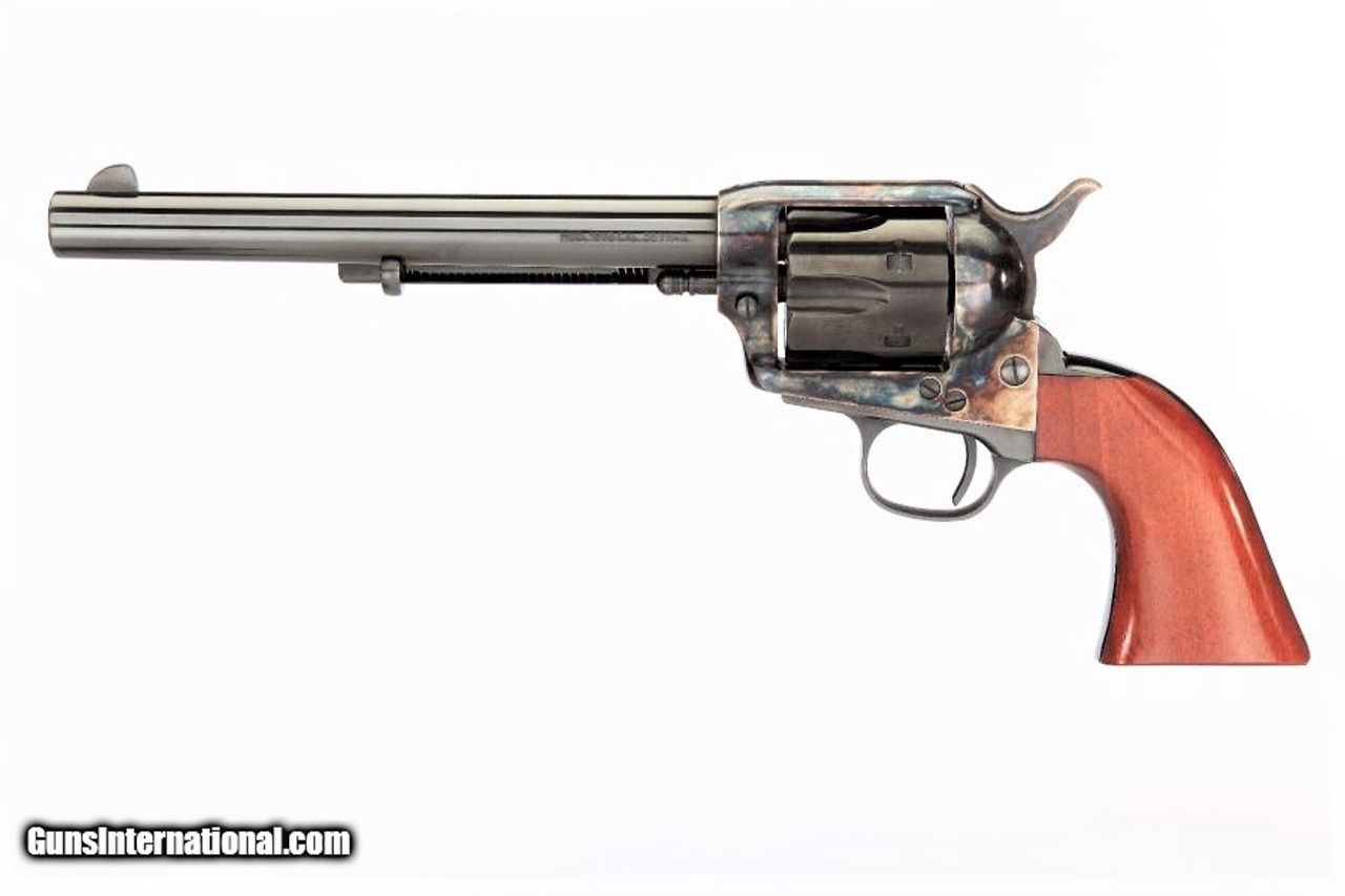 Description: Manufacturer: Taylor's & Co. / Uberti Model: 1873 Cattleman Standard Finish - Taylor Tuned SKU: 550909DE Caliber: ..44-40 Win Capacity: 6 Rounds Barrel Length: 7.5" Finish: Color Case Hardened Frame, Blued Barrel and Cylinder Grip: Navy-Size Walnut OAL: 13.10" Sights: Fixed Front Blade, Rear Frame Notch Weight: 2.70 lbs All items are factory new in box unless otherwise stated. Based on the information available to us, the above specifications describe this item to the best of our knowledge. For further information, please contact or visit the manufacturer's . SOLD |