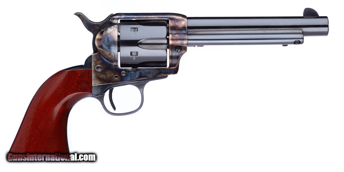 Description: Manufacturer: Taylor's & Co. / Uberti Model: Cattleman Standard Finish - Taylor Tuned SKU: 550899DE Caliber: .45 Colt / .45 ACP Capacity: 6 Rounds Barrel Length: 5.5" Round Blued Steel Frame: Case Hardened Steel Overall Length: 11.10" Weight: 2.5 lbs Grip: Walnut Sights: Fixed Blade Front, Rear Sight Notch in Frame All items are factory new in box unless otherwise stated. Based on the information available to us, the above specifications describe this item to the best of our knowledge. For further information, please contact or visit the manufacturer's . SOLD |