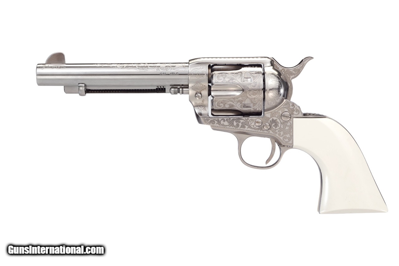 Description: Manufacturer: Taylor's & Co. / Pietta Model: Outlaw Legacy Revolver SKU: 200067 Caliber: .45 LC Capacity: 6 Rounds Barrel Length: 5.5" Frame: Steel Finish: Nickel Engraved Weight: 2.40 lbs Grip: Ivory Polymer OAL: 11.10" Sights: Fixed Front Blade, Rear Frame Notch All items are factory new in box unless otherwise stated. Based on the information available to us, the above specifications describe this item to the best of our knowledge. For further information, please contact or visit the manufacturer's . SOLD |