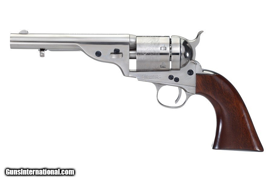 Description: Manufacturer: Taylor's & Co. / Uberti Model: C. Mason Revolver - 1860 Army Nickel SKU: 550751 Caliber: .38 Special Capacity: 6 Rounds Barrel Length: 5.5" Round, Nickeled Steel Cylinder: Nickeled Steel, Roll Engraved Frame: Nickeled Steel Weight: 2.6 lbs Grip: Walnut Army Overall Length: 11.28" Sights: Fixed Front Blade, Rear Sight Notch on Hammer All items are factory new in box unless otherwise stated. Based on the information available to us, the above specifications describe this item to the best of our knowledge. Price: $749.99 Contact Seller |