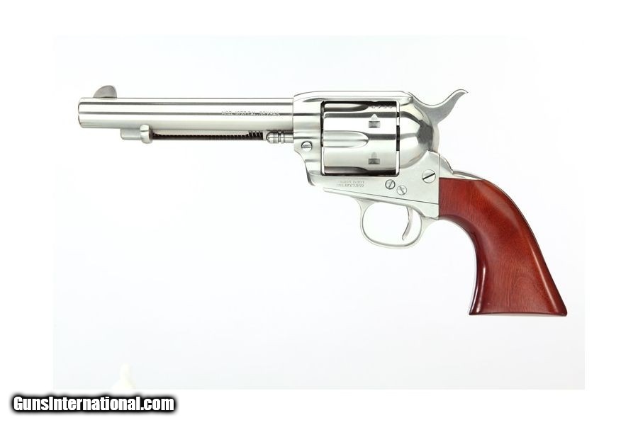 Description: Manufacturer: Taylor's & Co. / Uberti Model: 1873 Cattleman Stainless Steel SKU: 550839 Caliber: .45 Colt Capacity: 6 Rounds Barrel Length: 5.5" Finish: Stainless Steel Grip: Walnut OAL: 11.10" Sights: Fixed Front Blade, Rear Frame Notch Weight: 2.5 lbs All items are factory new in box unless otherwise stated. Based on the information available to us, the above specifications describe this item to the best of our knowledge. For further information, please contact or visit the manufacturer's . SOLD |