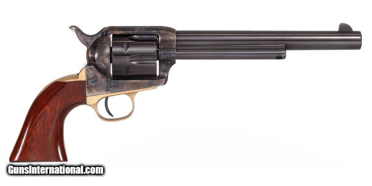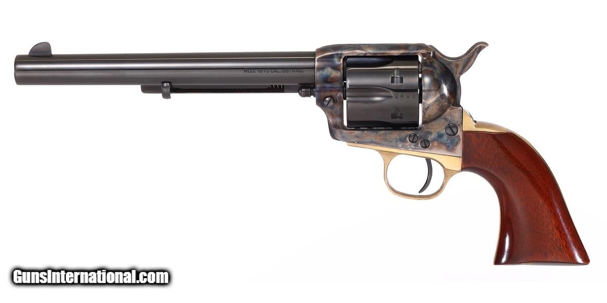Description: Manufacturer: Taylor's & Co. / Uberti Model: Ranch Hand SKU: 550531 Caliber: .357 Magnum / .38 Special Capacity: 6 Rounds Barrel Length: 7.5" Round, Blued Steel Cylinder: Blued Steel Half Fluted Finish: Case Hardened Steel, Brass Backstrap and Trigger Guard Weight: 2.70 lbs Grip: Walnut OAL: 13.10" Sights: Fixed Front Blade, Rear Frame Notch All items are factory new in box unless otherwise stated. Based on the information available to us, the above specifications describe this item to the best of our knowledge. For further information, please contact or visit the manufacturer's . SOLD |