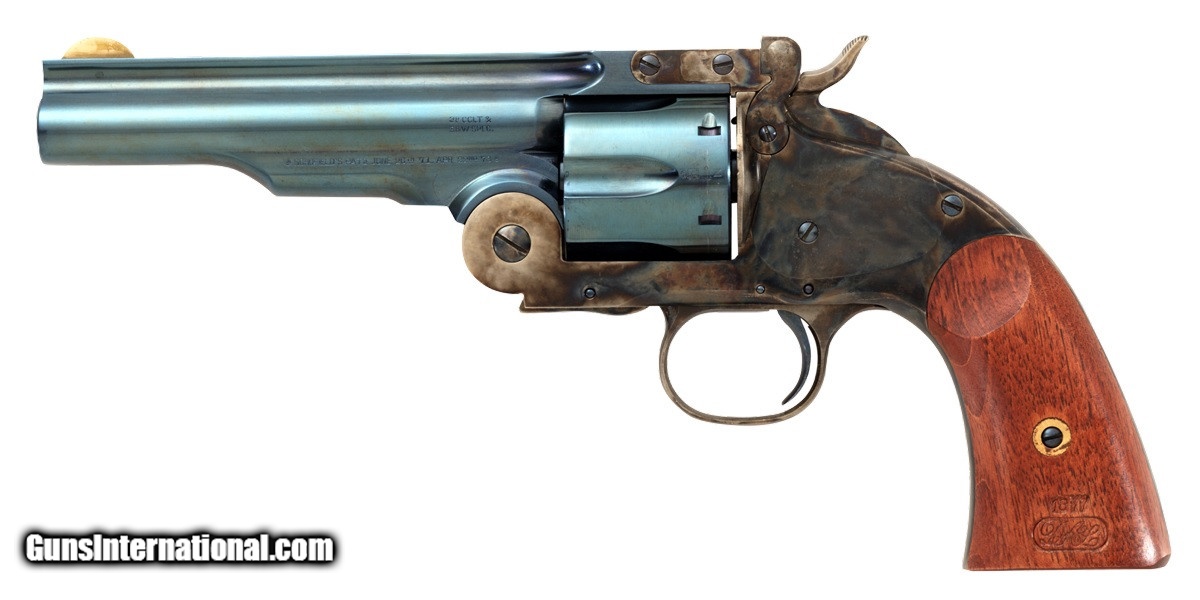 Description: Manufacturer: Taylor's & Company / Uberti Model: Schofield Charcoal Blue SKU: 550682 Caliber: .38 Special Capacity: 6 Rounds Barrel Length: 5" Charcoal Blue Steel Cylinder: Charcoal Blue Steel, Half Fluted Overall Length: 10.75" Weight: 2.9 lbs Frame Finish: Case Hardened Steel Barrel & Cylinder Finish: Charcoal Blue Grips: Walnut Sights: Fixed Blade Front, Rear Sight Notch on Latch All items are factory new in box unless otherwise stated. Based on the information available to us, the above specifications describe this item to the best of our knowledge. For further information, please contact or visit the manufacturer's . SOLD |
