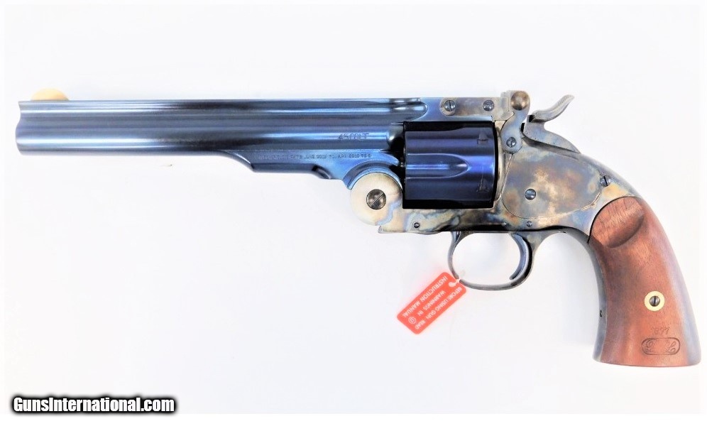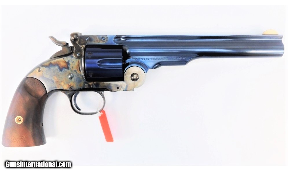 Description: Manufacturer: Taylor's & Company / Uberti Model: Schofield Charcoal Blue SKU: 550678 Caliber: .38 Special Capacity: 6 Round Cylinder Barrel Length: 7" Overall Length: 12.75" Weight: 2.97 lbs Frame Finish: Case Hardened Barrel & Cylinder Finish: Charcoal Blue Grips: Walnut Sights: Blade Front, Rear Sight on Back of Barrel All items are factory new in box unless otherwise stated. Based on the information available to us, the above specifications describe this item to the best of our knowledge. For further information, please contact or visit the manufacturer's . SOLD |