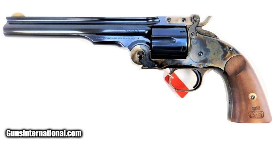 Description: Manufacturer: Taylor's & Co. / Uberti Model: Schofield SKU: 550651 Caliber: .44-40 Win Barrel Length: 7" Finish: Charcoal Blue and Case Hardened Capacity: 6 Rounds Overall Length: 12.75" Grips: 2-Piece Walnut Sights: Fixed Front Blade, Rear Sight on Back of Barrel Weight: 2.97 lbs All items are factory new in box unless otherwise stated. Based on the information available to us, the above specifications describe this item to the best of our knowledge. For further information, please contact or visit the manufacturer's . SOLD |