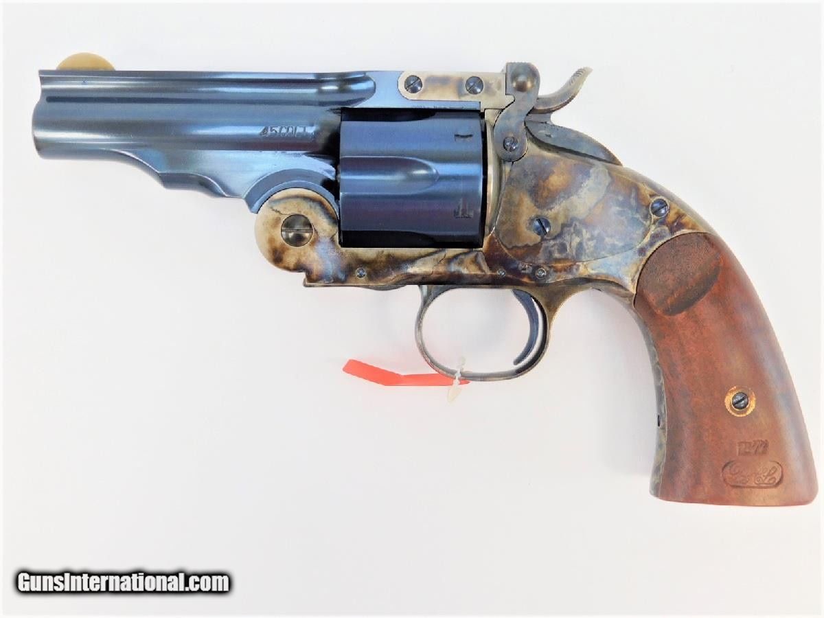 Description: Manufacturer: Taylor's & Company / A. Uberti of Italy Model: Schofield Charcoal Blue SKU: 550657 Caliber: .45 Colt Capacity: 6 Round Cylinder Barrel Length: 3.5" Overall Length: 9" Frame Finish: Case Hardened Barrel & Cylinder Finish: Charcoal Blue Grips: 2-Piece Walnut Sights: Blade Front, Rear Sight Notch All items are factory new in box unless otherwise stated. Based on the information available to us, the above specifications describe this item to the best of our knowledge. For further information, please contact or visit the manufacturer's . SOLD |