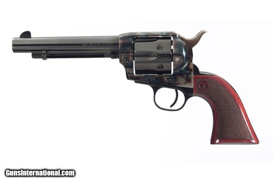 Description: Manufacturer: Taylor's & Co. / Uberti Model: Smoke Wagon SKU: 550813 Action: Single Caliber: .45 LC Capacity: 6 Rounds Barrel Length: 5.5" Round Finish: Blue Finish with Case Hardened Frame Weight: 2.50 lbs Grip: Checkered Walnut OAL: 11.10" Sights: Fixed Front Blade, Rear Frame Notch All items are factory new in box unless otherwise stated. Based on the information available to us, the above specifications describe this item to the best of our knowledge. For further information, please contact or visit the manufacturer's . SOLD |