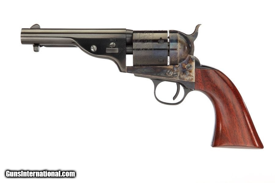 Description: Manufacturer: Taylor's & Co. / Uberti Model: C. Mason Revolver - 1860 Army SKU: 550744 Caliber: .38 Special Capacity: 6 Rounds Barrel Length: 4.75" Round Finish: Blue Finish with Case Hardened Frame Weight: 2.55 lbs Grip: Walnut OAL: 10.53" Sights: Fixed Front Blade, Rear Sight Notch in Hammer All items are factory new in box unless otherwise stated. Based on the information available to us, the above specifications describe this item to the best of our knowledge. For further information, please contact or visit the manufacturer's . SOLD |
