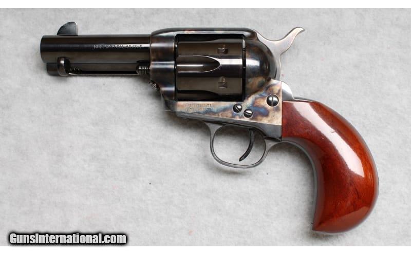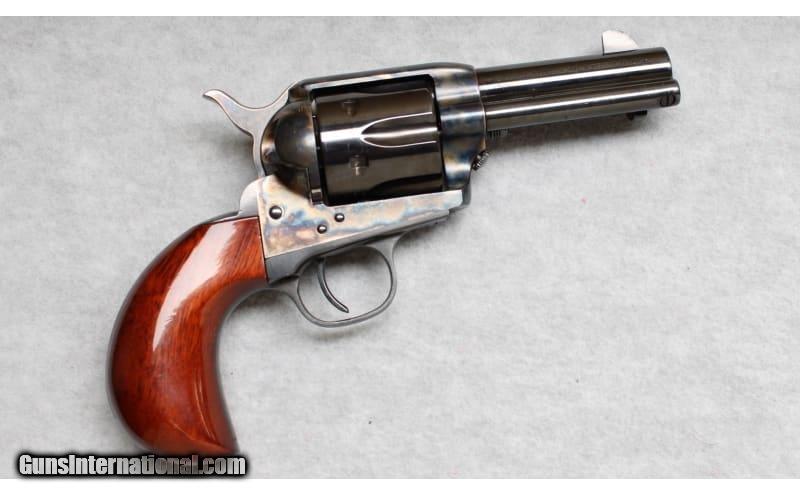 Description: Appears as new with original box. 6 shot .45 caliber single action revolver. Polished blue finish, case colored frame, 3 1/2" barrel, and fluted cylinder. Fixed sights, checkered hammer and gloss finish "Birds Head" wood grips. A great choice for Cowboy Action shooting competitions, or for Old West collectors .45 Long Colt SOLD Chambers: Revolver Metal Condition: As new Wood Condition: Grips are as new Bore Condition: Bright Barrels: 3 1/2 Triggers: Single action Butt Pad: Wood grips Item Location: La Vista, NE |