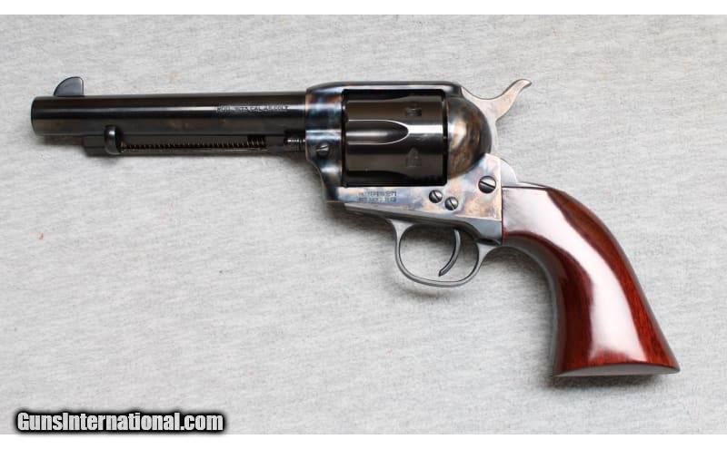 Description: As new condition, with original box. Nicely presented SAA clone revolver - 5 1/2" Barrel, blued barrel & cylinder, case colored frame, fixed sights, 6 shot fluted cylinder, single action trigger and gloss finish wood grips. An excellent choice for Cowboy Action Shooting competitions. .45 Colt SOLD Chambers: Revolver Metal Condition: As new Bore Condition: Bright Barrels: 5 1/2 Triggers: Single action Butt Pad: Wood grips Sights: "Fixed rear channel, blade front sight Item Location: La Vista, NE |