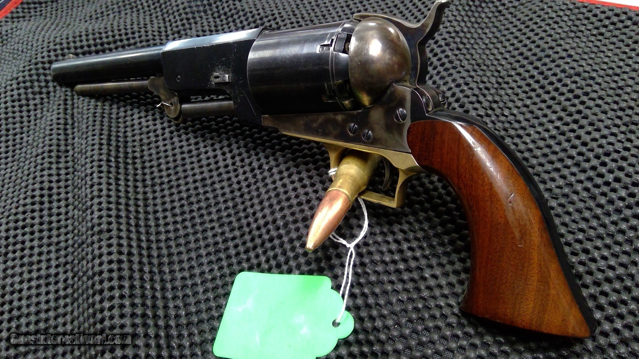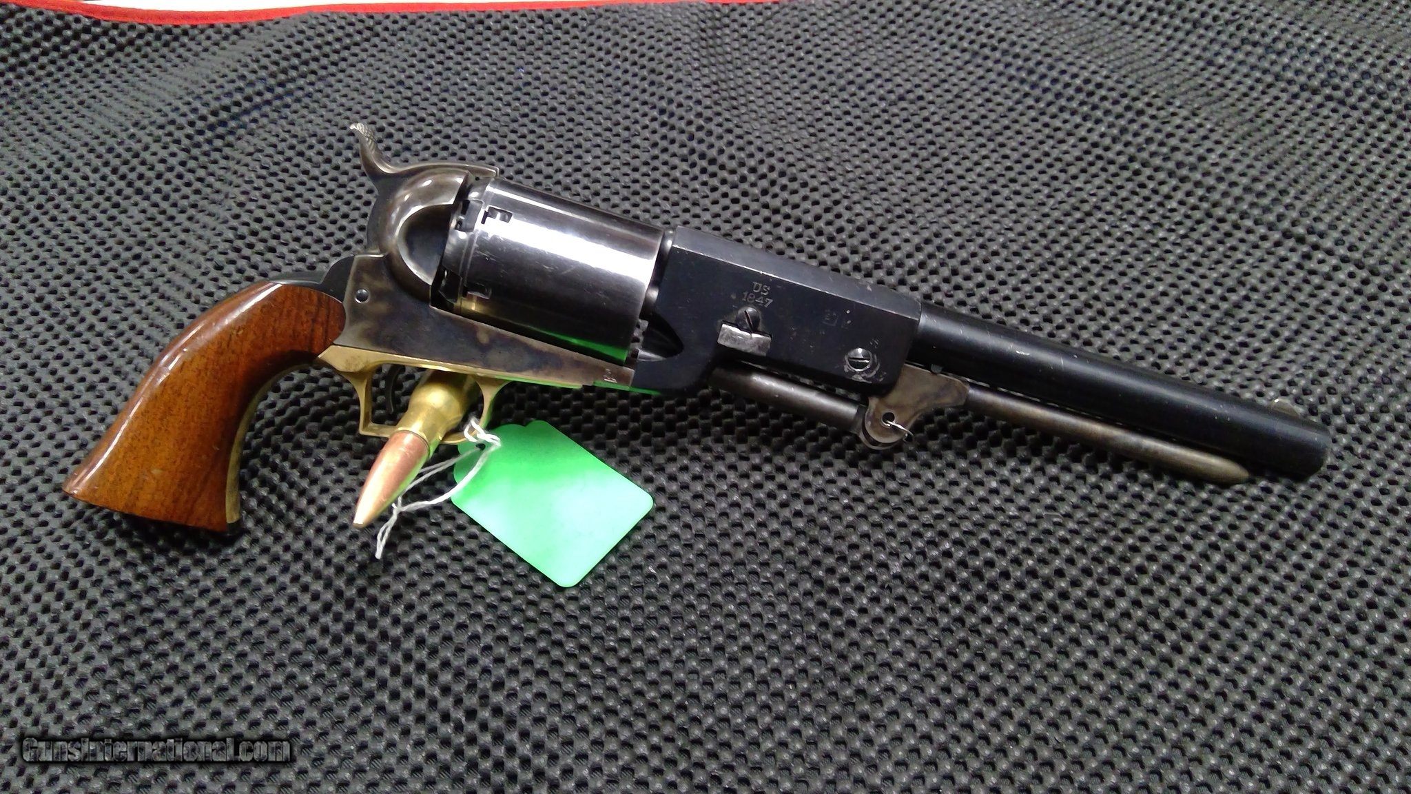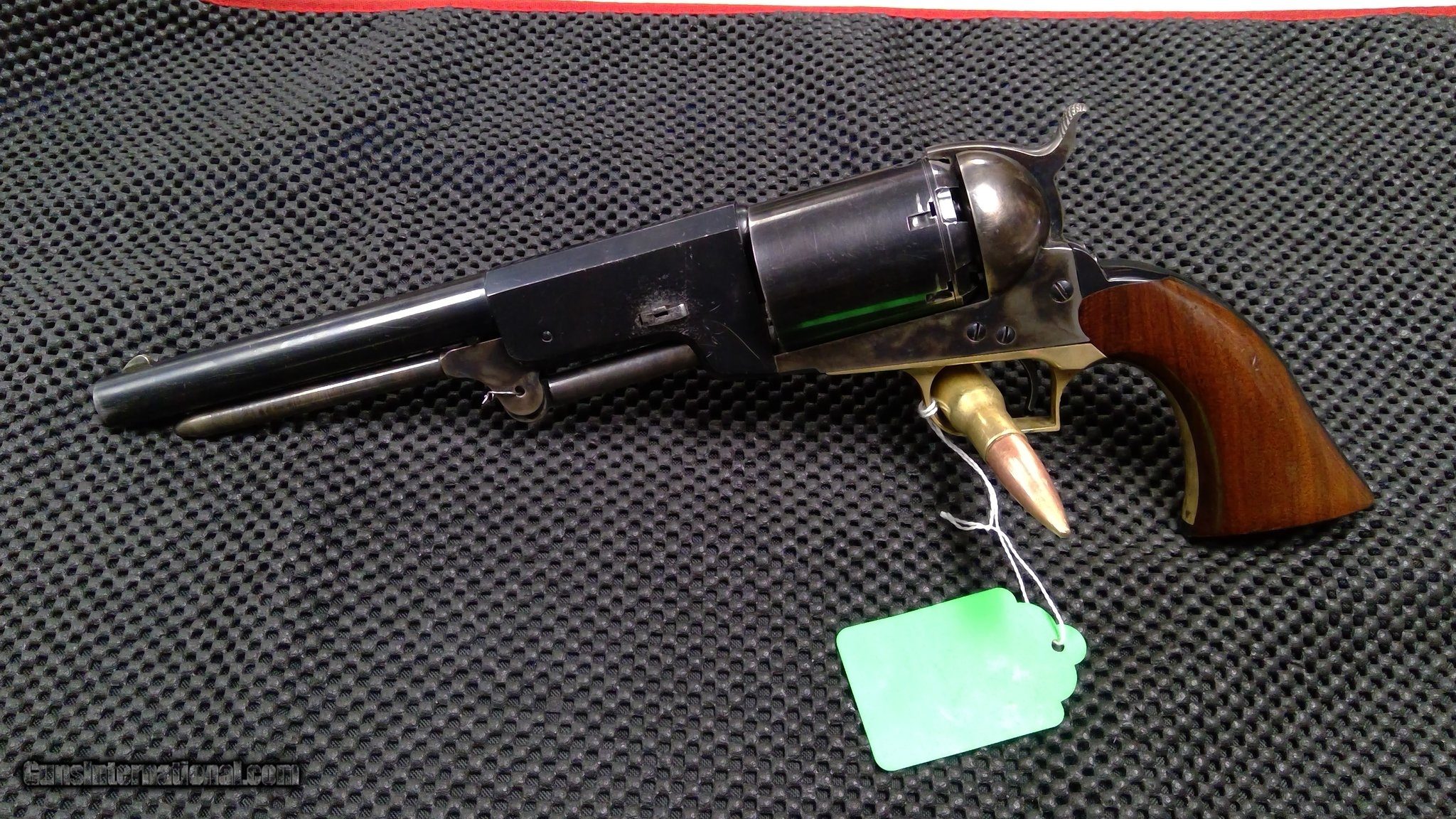 Description: Guns Listing ID: 498545 The revolver is in good condition. It has some blemishing sides from what appears to be from the barrel wedge assembly being removed and put back in such as impact marks. It appears to be missing the loading lever plunger screw. It has been modified to shoot 44 special cartridge ammunition. There does not seem to be any obvious issues when operating the revolver. Comes as is. (BVR) SOLD Manufacturer: UBERTI Model: 1847 Caliber Info: .44 S&W SPECIAL Condition: Used - Non-Certified Barrels: 9 BARREL Action: REVOLVER Finish: blue |