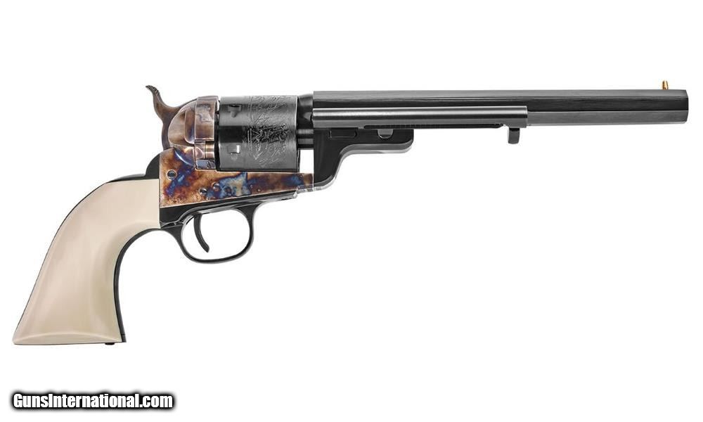 Description: Manufacturer: A. Uberti Model: 1851 Navy Conversion - Outlaw & Lawmen Series - Wild Bill SKU: 356717 Caliber: .38 Special Barrel Length: 7.5" Finish: Blued, Case Hardened Frame Cylinder: 6-Shot, Fluted Frame: Steel Overall Length: 13.6" Grips: Ivory-Style Weight: 2.8 lbs All items are factory new in box unless otherwise stated. Based on the information available to us, the above specifications describe this item to the best of our knowledge. For further information, please contact or visit the manufacturer's . SOLD |