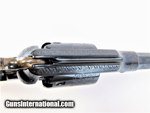 Description: Manufacturer: Uberti Model: 1858 Deluxe SKU: 341011 Caliber: .44 Cylinder: 6-Shot Barrel Length: 8" Octagonal Overall Length: 13.6" Grooves: 7 Material: Blue Steel Frame and Backstrap, Brass Trigger Guard Finish: Blue Steel Engraved Grips: Ivory-Style Weight: 2.7 lbs Uberti exclusive edition of this legendary firearm has been lavishly engraved by the atelier of Master Cesare Giovanelli, a renowned name in the world of premium firearms. The engraving is hand-chased, making each revolver unique; the floral design comes from an original 19th century pattern and covers the entire metal surface of the revolver – from the hammer to the backstrap and trigger guard, from the cylinder to the barrel and loading lever. Uberti 1858 Deluxe Edition is chambered in the original .44 caliber cap-and-ball round and features a deep blue finish, color-case hammer, brass trigger guard and textured, simulated ivory grips. SOLD |