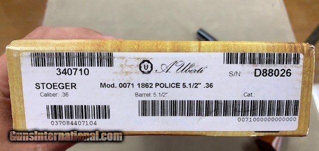 Description: From a collector comes this Uberti 1862 Police Revolver with casehardened steel frame, etc. in cal .36 (.375 Round Ball). Reveolver is pre owned but unfired - as new in the original box. No ffl required - replica percussion antique. SOLD Handgun Caliber: .36 |