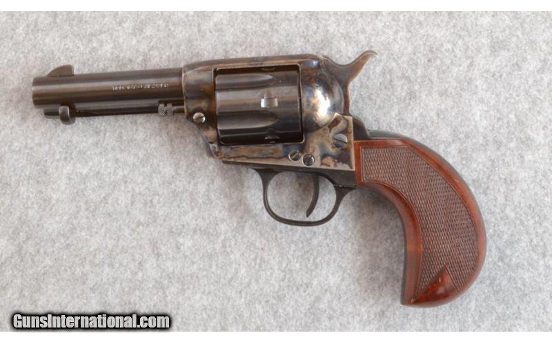 Description: Has unique receiver that gives the metala multi-colored appearance that you often get with heat treated metal. .22 Long Rifle SOLD Chambers: Six shot cylinder. Metal Condition: Excellent. Wood Condition: Excellent. Barrels: 3.5 inches. Triggers: Standard. Sights: Groove rear and blade front. Item Location: Lone Tree, CO |