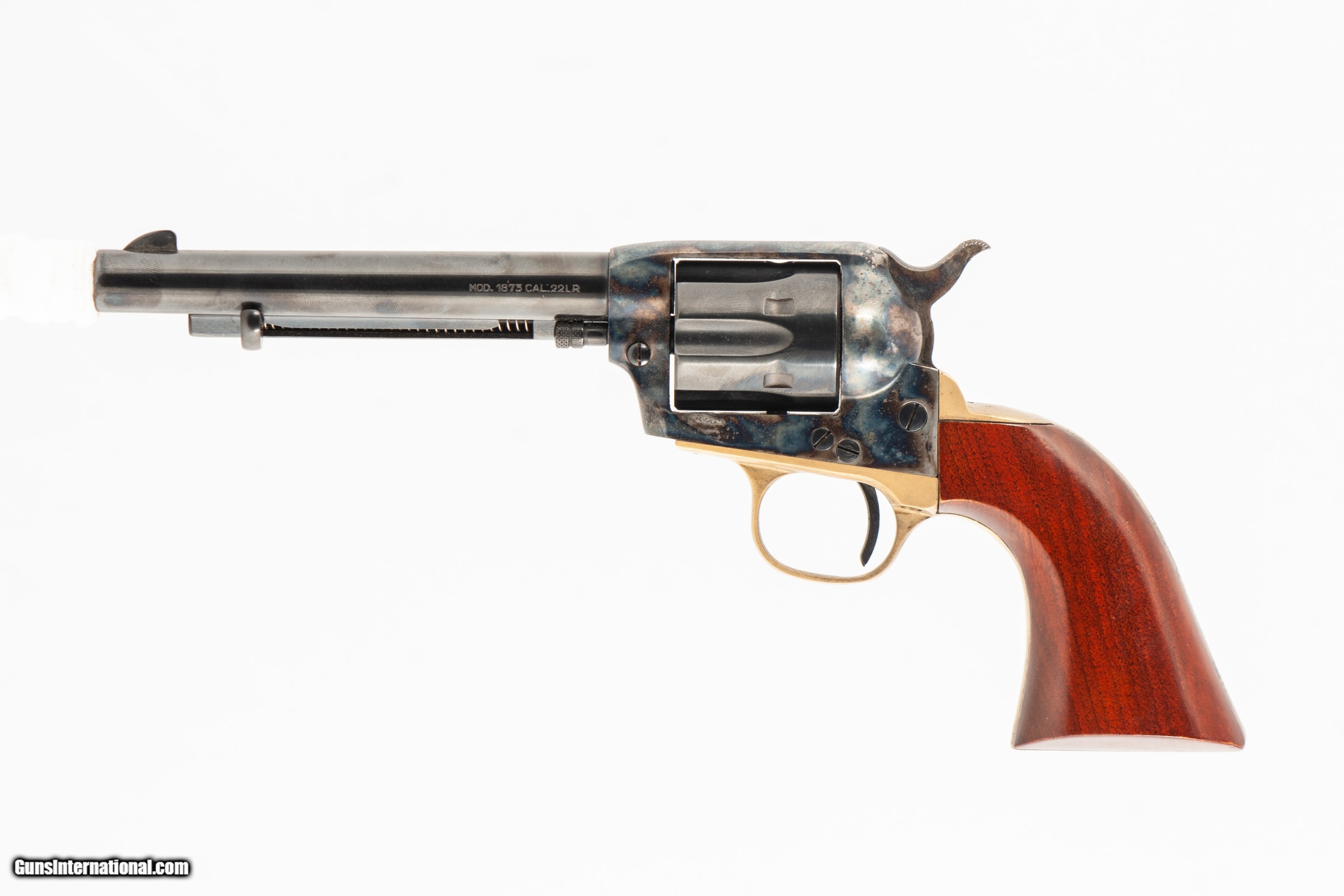 Uberti 1873 chambered for 22 lr with a 5 1/2 inch barrel with a bright and shiny bore. This firearm is in excellent condition and is covered by Dury's Lifetime Warranty.