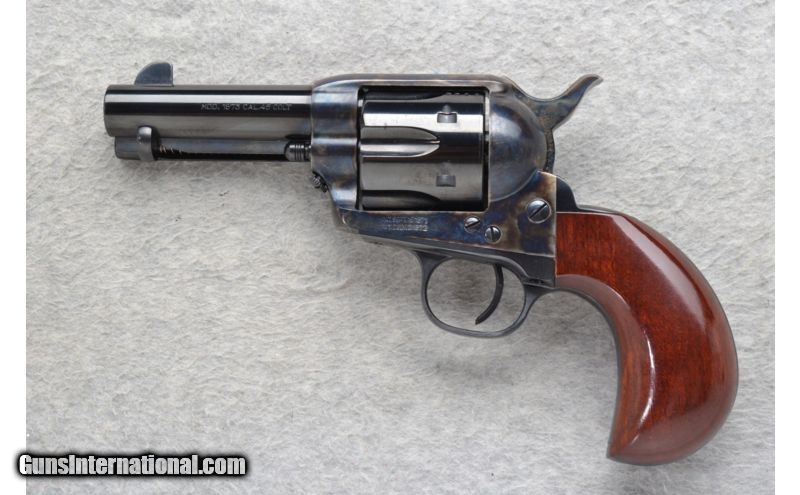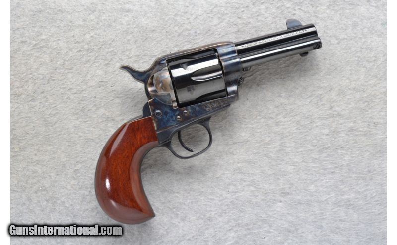 Description: This A. Uberti Model 1873 is a 6 shot single action revolver in .45 Colt Cal. It has a 3 1/2 inch barrel, smooth grip walnut Bird's Head grip and case colored receiver. In overall excellent condition it comes as is in its original box with Owners Manual and gun lock. SOLD Manufacturer: Made in Italy. Caliber Info: .45 Colt Chambers: 6 shot. Metal Condition: Excellent. Wood Condition: Excellent. Bore Condition: Excellent. Barrels: 3.5 inches. Triggers: Single Action. Stock: Smooth grip walnut Bird's Head. Case colored receiver. Weight: 32 oz. Sights: Blade front. Notch rear. Item Location: Richfield, WI |