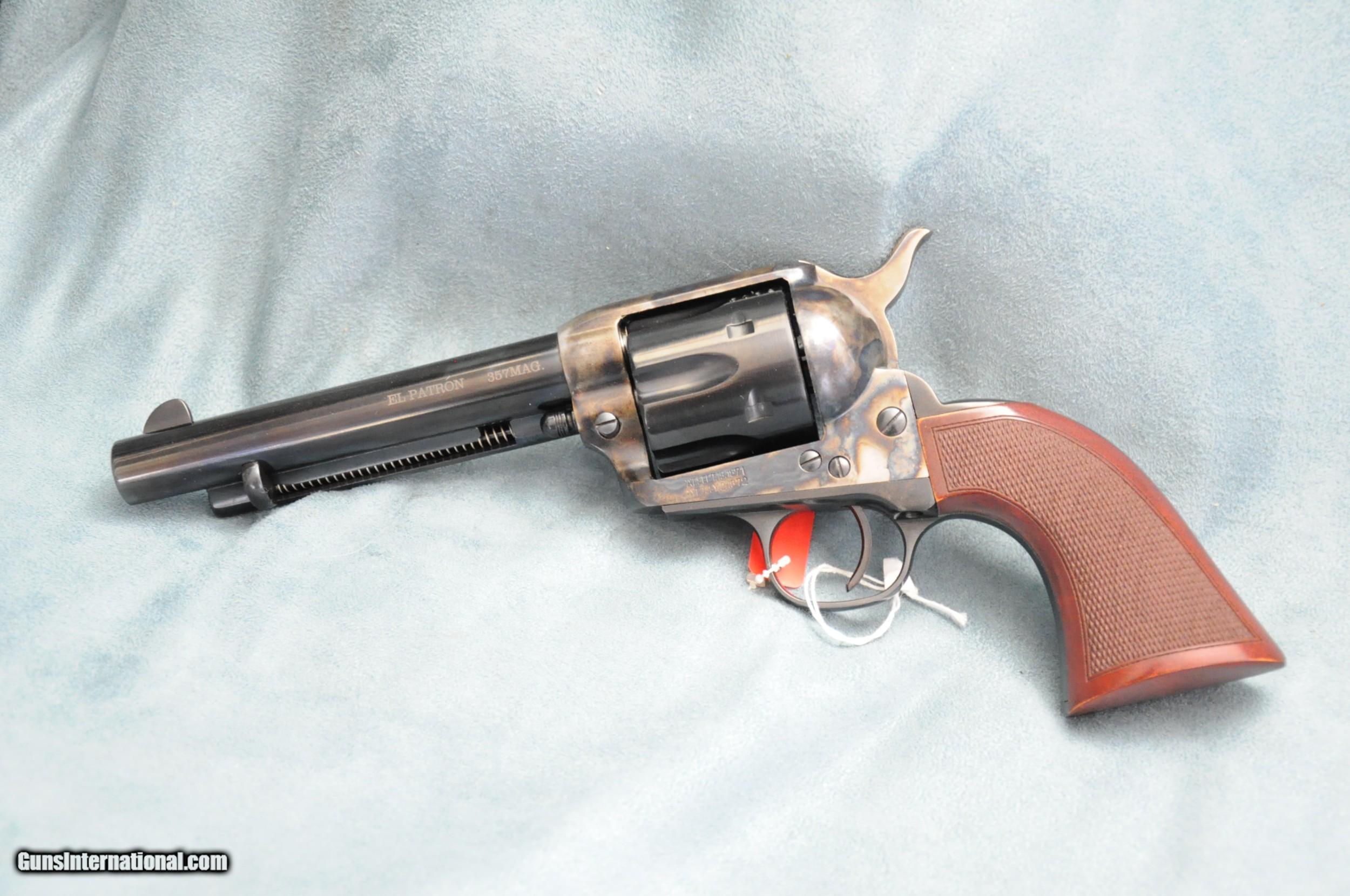 Description: Uberti El Patron 357 Magnum with case-hardened frame, checkered wood grip. New in Box Item #345172. SOLD Manufacturer: Uberti Model: El Patron Caliber Info: 357 Magnum Condition: NEW Barrels: 5.5 inches Finish: Case-hardened frame |