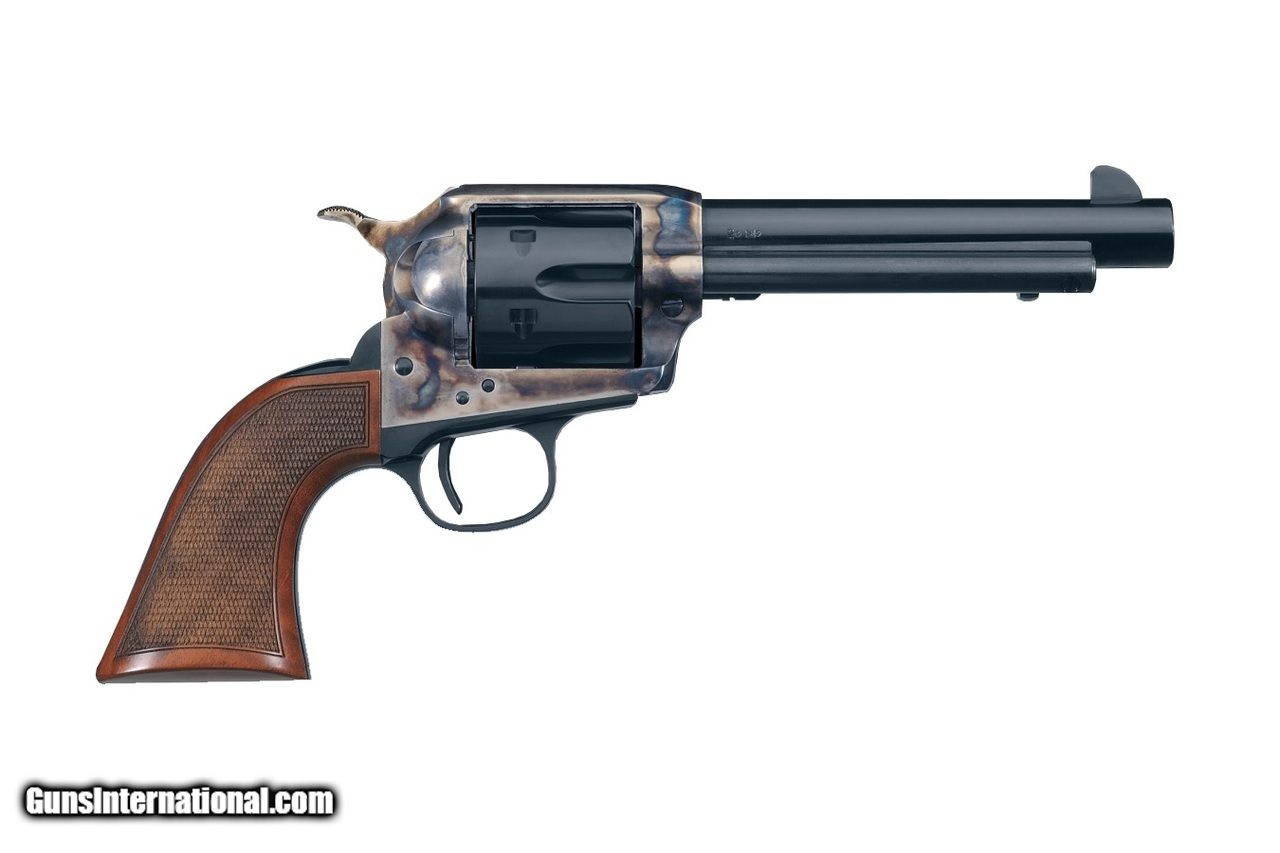 Description: Manufacturer: A. Uberti Model: 1873 Cattleman El Patrón Competition Revolver SKU: 345180 Caliber: .45 Colt Barrel Length: 4.75" Barrel & Cylinder Finish: Blued Cylinder: 6-shot, Fluted Frame: Case Hardened Number of Grooves: 6 Grips: 1-Piece Checkered Walnut Fitted with U.S.-made Wolff springs, numbered cylinders and wide EasyView sights Weight: 2.3 lbs All items are factory new in box unless otherwise stated. Based on the information available to us, the above specifications describe this item to the best of our knowledge. For further information, please contact or visit the manufacturer's . SOLD |