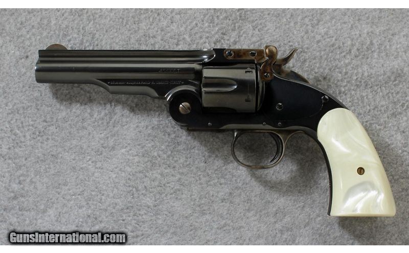 Description: The Stoeger 1875 No. 3 Top Break 2nd Model .45 Colt Ctg. revolver is a reproduction of the Smith & Wesson 1875 Model No. 3 revolver. Major George Schofield designed the Top Break as a cavalry pistol. Its efficient, break-open design could be operated with one hand. That made it easy to eject the spent cartridges and reload while on horseback. Manufactured 2007. .45 Colt SOLD Metal Condition: Excellent with a turn line on the cylinder Bore Condition: Excellent Barrels: 5 inch barrel Triggers: Single action Weight: 40 Oz. Sights: Fixed V notch rear sight with blade front Item Location: Lehi, UT |