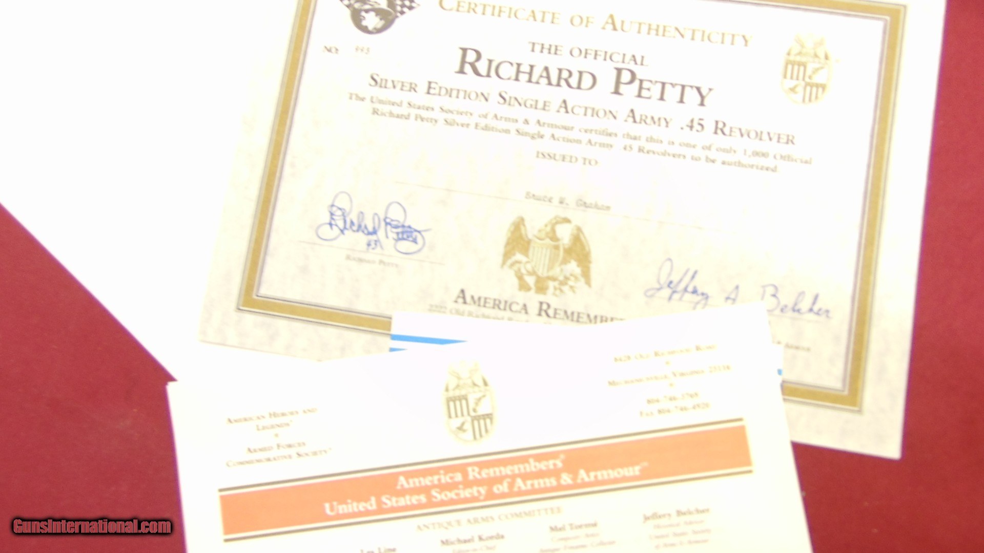 UBERTI AMERICA REMEMBERS RICHARD PETTY SIGNED SINGLE ACTION REVOLVER SIGNED GUN & PICTURES