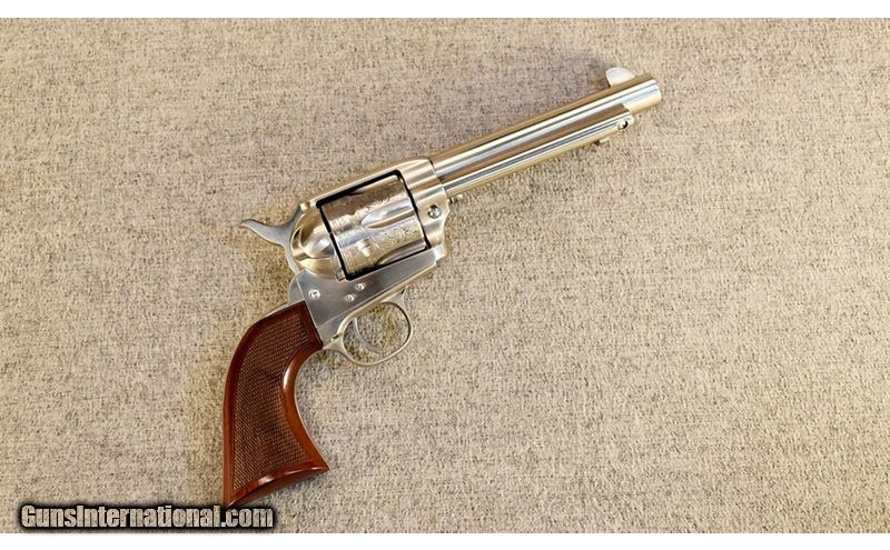 Description: This is an Uberti El Patron Belleza in .45 Colt, a stainless single action revolver with floral engraving on the cylinder .45 Colt SOLD Metal Condition: Very good with a few small scratches and a larger scratch on the right side of the hammer Wood Condition: Very good with a few small scratches Bore Condition: Clean with bright lands Barrels: 5.5 Triggers: SA Butt Pad: Checkered walnut grips Weight: 2 Lbs. 4 Oz. Sights: "Blade front, integral U-notch rear Item Location: Glendale, AZ |