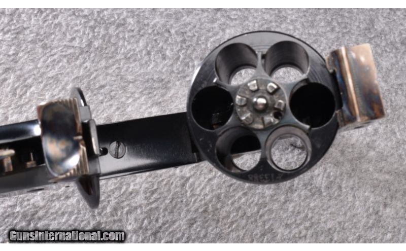 Description: Wood is in excellent condition and remains solid. Blue and case color are also in excellent shape and show very few handling marks. Top-break model Schofield is complete with original box. SOLD Manufacturer: S/N F13XXX Caliber Info: .45 Colt Metal Condition: Excellent Wood Condition: Excellent Bore Condition: Excellent Barrels: 5 Triggers: Factory Stock: Uncheckered Walnut Grips Weight: 42 OZ Sights: Brass Blade Front with Intergral Notch Rear Item Location: Wheeling, WV |