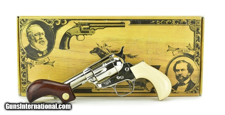 Uberti Lightning .38 Special/Colt caliber revolver. 3.5” Lightning model with nickel finish and faux ivory grips. Excellent condition with box and extra grips.