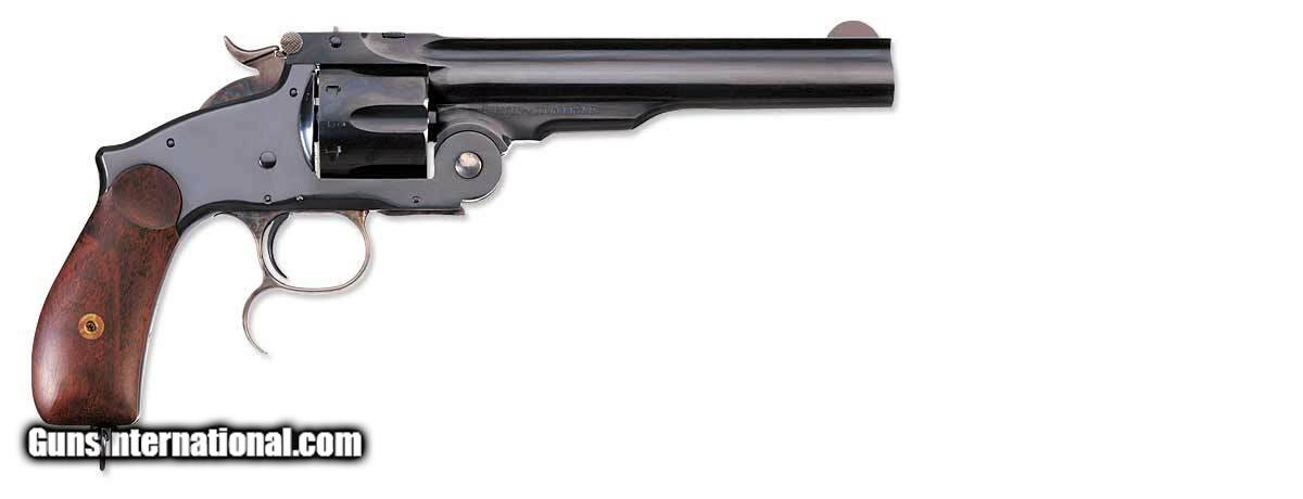 Description: Manufacturer: Uberti Model: No. 3 Russian Top Break Sku: 348650 Caliber: .44 Russian Barrel Length: 6.5" Capacity: 6-Shot, Fluted Overall Length: 11.8" Twist: 1:20" RH Blue Steel Frame and B/S, Case-Hardened T/G Grips: 2-Pc Walnut with Lanyard Ring Finish: Blued Sights: Blade Front Weight: 2.5 lbs True to the originals, Uberti Top Break Revolvers come in 3 models, including the Russian Model with Cyrillic barrel stampings. Major George Schofield designed the Top Break as a cavalry pistol. Its efficient, break-open design could be operated with one hand. That made it easy to eject the spent cartridges and reload while on horseback. It was the Russian government that truly embraced the new side arm. The Czar ordered 41,000 Top Breaks. Those had a modified grip design, lanyard ring, and a distinctive trigger spur. SOLD |