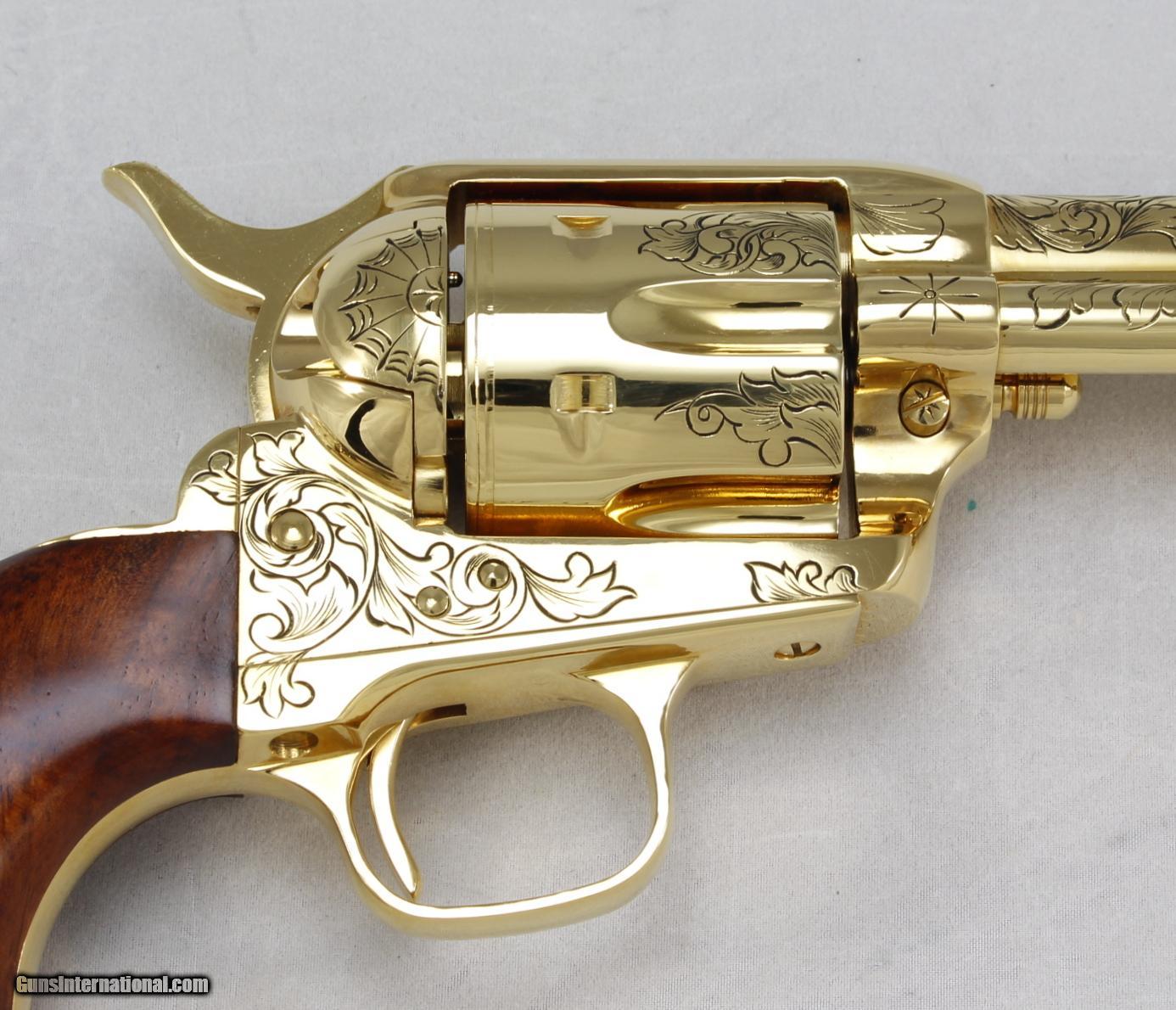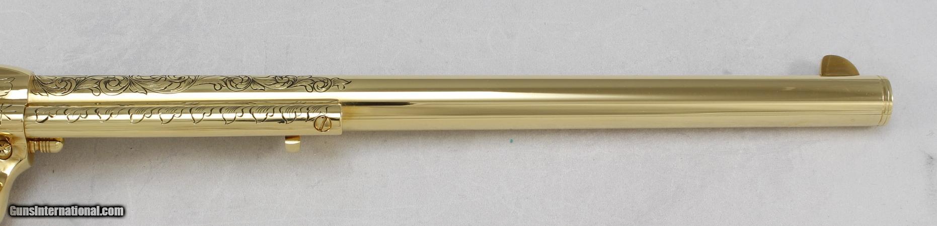 Description: UBERTI, "SAMUEL COLT TRIBUTE", 45 COLT, SN#92549, MFG: 1980'S. This gun 318 of 950 Made. 24kt GOLD PLATED, 12" Barrel, Fine Glass Top Display with Accessories. Unfired. Ships to Lower 48, $55.00 SOLD Manufacturer: UBERTI Model: Samuel Colt Tribute Serial Number: 92549 Caliber Info: 45 COLT Condition: NEW Barrels: 12 |