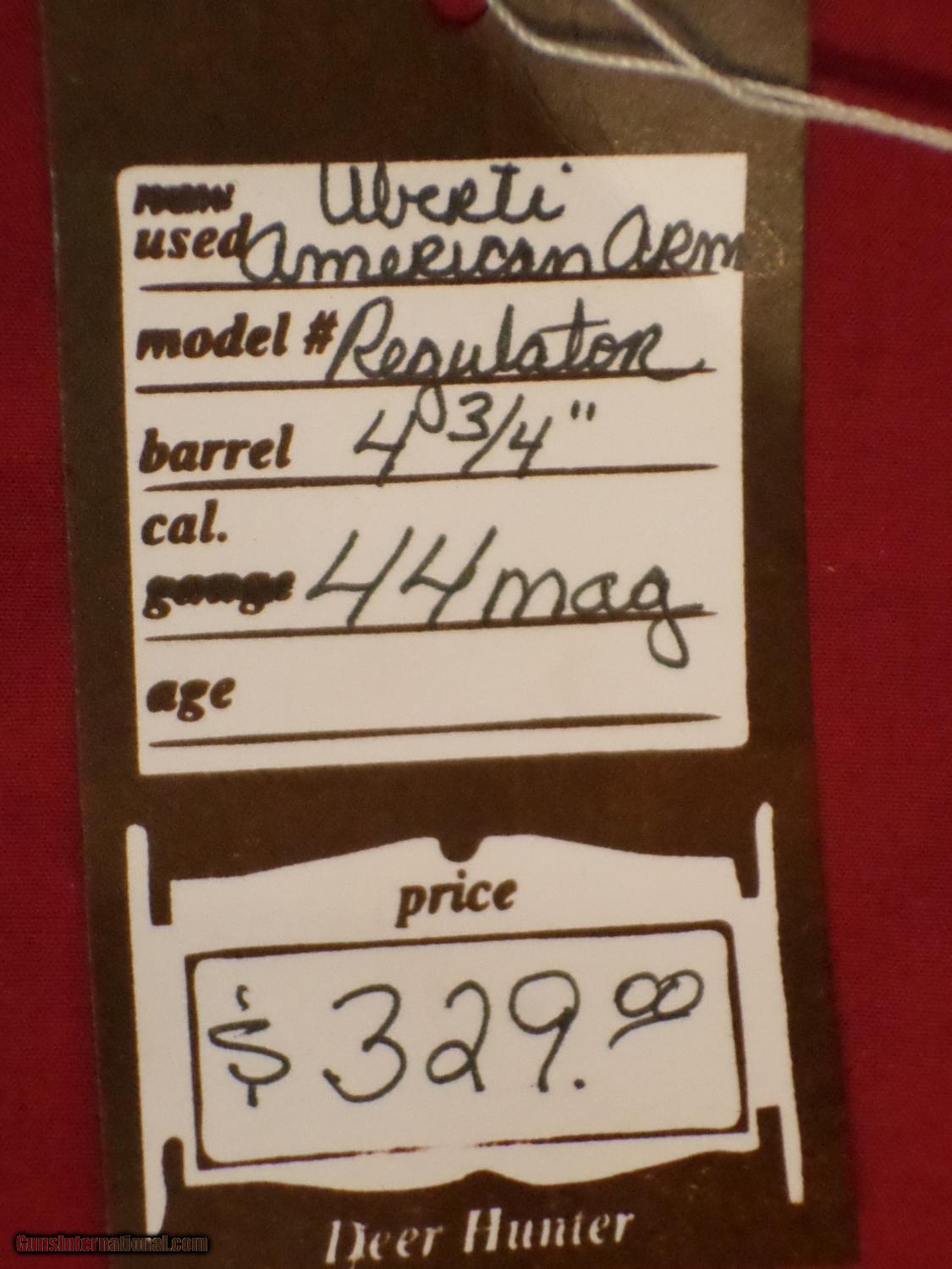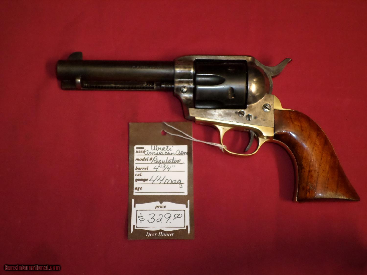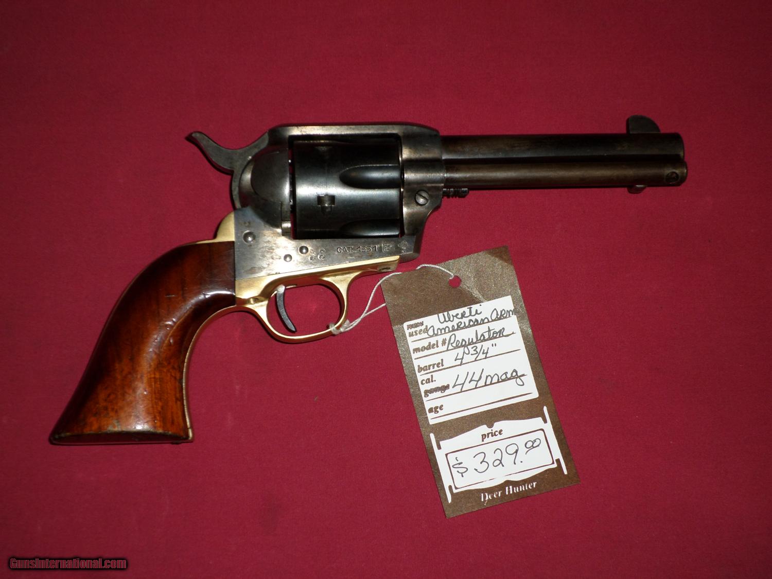 Description: SOLD For sale, Uberti Regulator in .44 Mag with a 4 3/4" bbl. Good to very good condition. SOLD To see more of our inventory, visit deerhunter guns,com We accept MC, Visa and Discover, no AmEx. No Sales to California. Like us on Facebook: Deer Hunter Guns SOLD |
