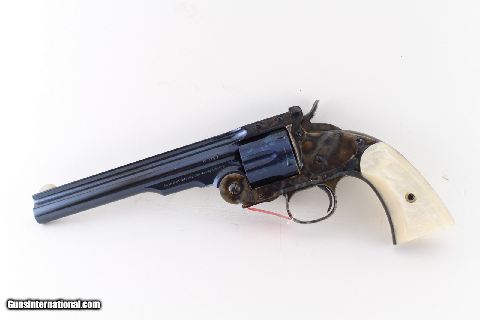 Description: Taylor & Co. Uberti Schofield 45 Colt, 7 inch barrel, Color Case Frame, Pearl Grips, NIB w/case. Gun is brand new, packing grease is still on gun which may be visible in some pictures. Click "Buy Now" to purchase, this will hold the gun for you. Please make arrangements with you local dealer to handle this transfer and to provide us with a copy of his FFL. Thanks SOLD Handgun Caliber: .45 Colt Manufacturer: Uberti Model: Schofield Barrel Length: 7 |