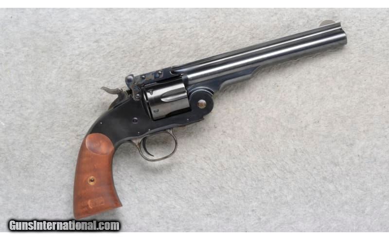 Description: This Uberti Model Schofield No.3 is a 6 shot single action top break open revolver in .45 long Colt Cal. It has a 7 inch barrel. A blade front sight and notch rear sight, The grip is a smooth hardwood. .45 Long Colt SOLD Chambers: 6 shot. Metal Condition: Very Good. Wood Condition: Very Good. Bore Condition: Very Good. Barrels: 7 inch. Triggers: Single Action. Weight: 44 oz. Sights: Blade front. Notch rear. Item Location: Richfield, WI |