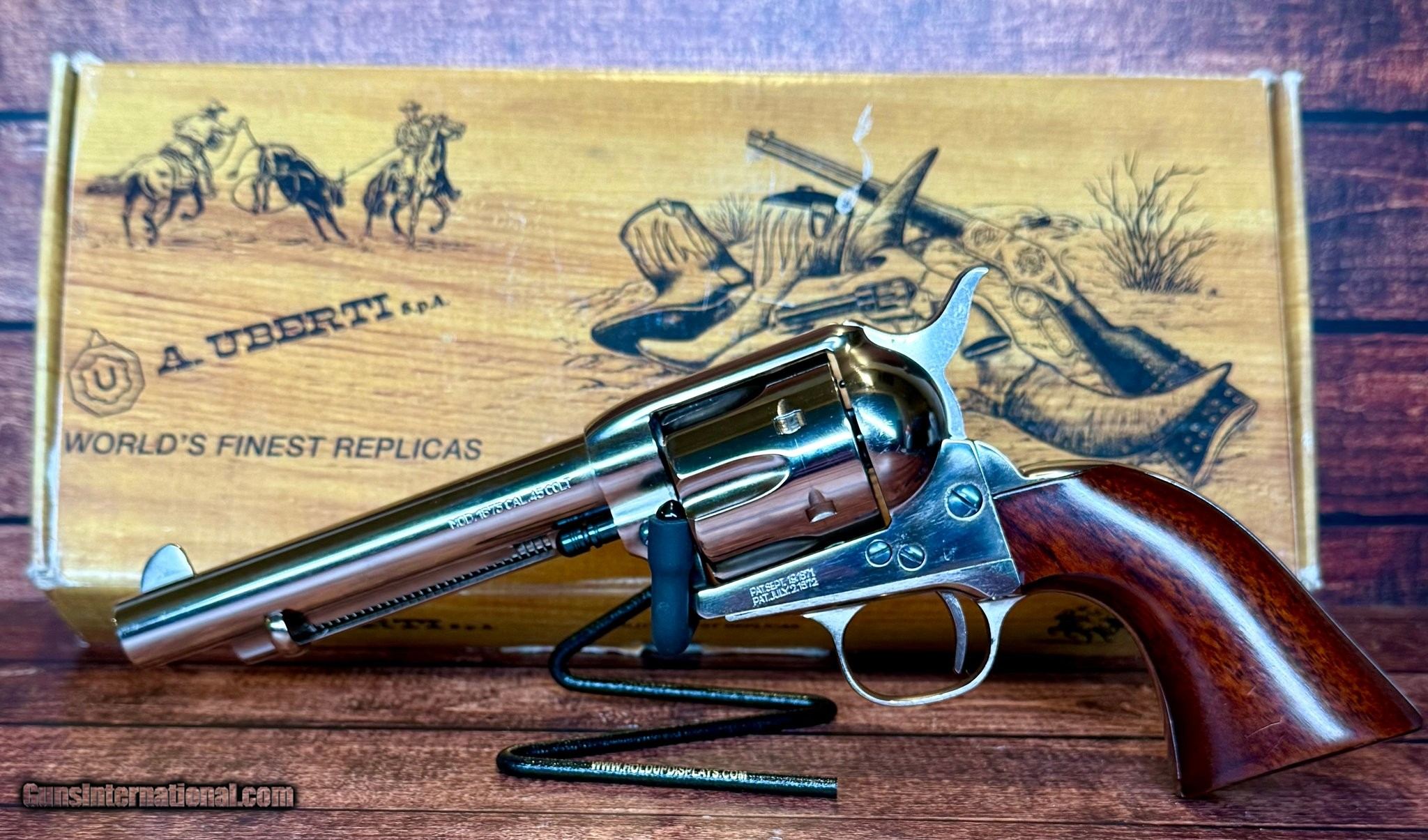 Description: Guns Listing ID: 598544 The Uberti 1873 Colt SAA 1873 Cattleman captures the look and feel of a late-19th-century Colt Single-Action Army while using modern forged carbon-steel construction. Finished with a beautiful polished nickel finish and fitted with a one-piece smooth walnut grip, this six-shot .45 Colt (Long Colt, LC) revolver delivers authentic period styling backed by Uberti’s precise Italian craftsmanship. Condition Overall Condition: Excellent, showing few signs of prior use and handling. Bore Condition: Excellent – Clean finish, no signs of wear. Bore Rifling: Excellent Rifling – Sharp lands and grooves. Forged carbon-steel construction in the frame, barrel, and cylinder gives this revolver the strength expected from a modern firearm while preserving 19th-century aesthetics. Firearm comes with original box and paperwork. Its hardwood grip is both durable and visually appealing, providing a solid feel and enhancing the overall shooting experience. The front blade and grooved rear sight facilitate accurate targeting, making this revolver as functional as it is beautiful. Owning the A. Uberti Model 1873 Single Action Army means possessing a tangible connection to the lore and legend of the Old West. Whether you‚re an aficionado of historical firearms or a discerning collector, this revolver offers a unique blend of artistry, legacy, and practicality. Experience the unparalleled craftsmanship of A. Uberti and add a touch of the Wild West to your collection today. Specifications Manufacturer A. Uberti Model 1873 Cattleman Caliber .45 Colt Overall Condition Excellent Bore Condition Excellent Action SAO Capacity 6 + rd Barrel Length 5.5\" Finish Polished Nickel Stock/Grips One-piece smooth walnut Sight/Optic Fixed iron sights Manufacturer: UBERTI Model: Stoeger Colt SAA 1873 Cattleman Polished Nickel Caliber Info: .45 LC Condition: Used - Non-Certified Barrels: 5.5" BARREL Action: REVOLVER Finish: polished nickel Price: $724.99 Contact Seller |