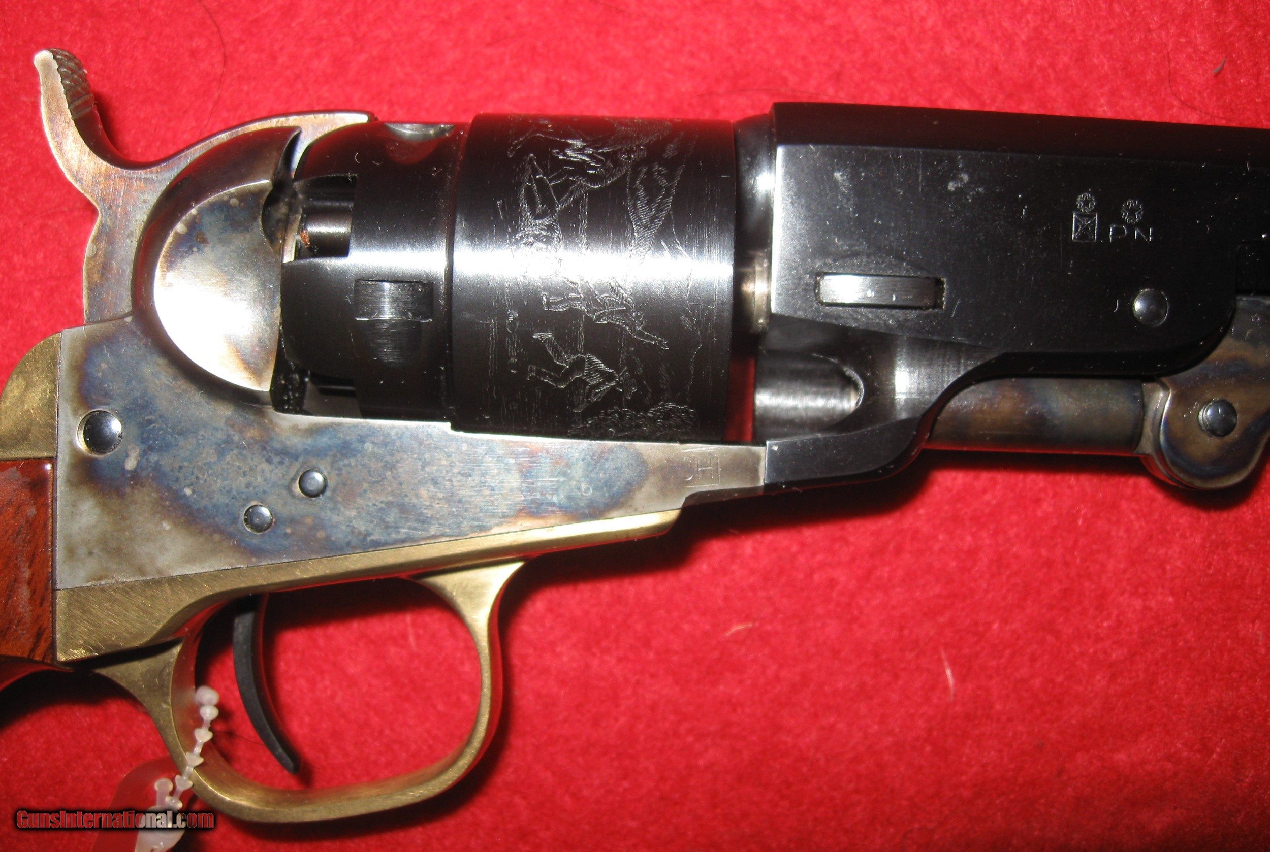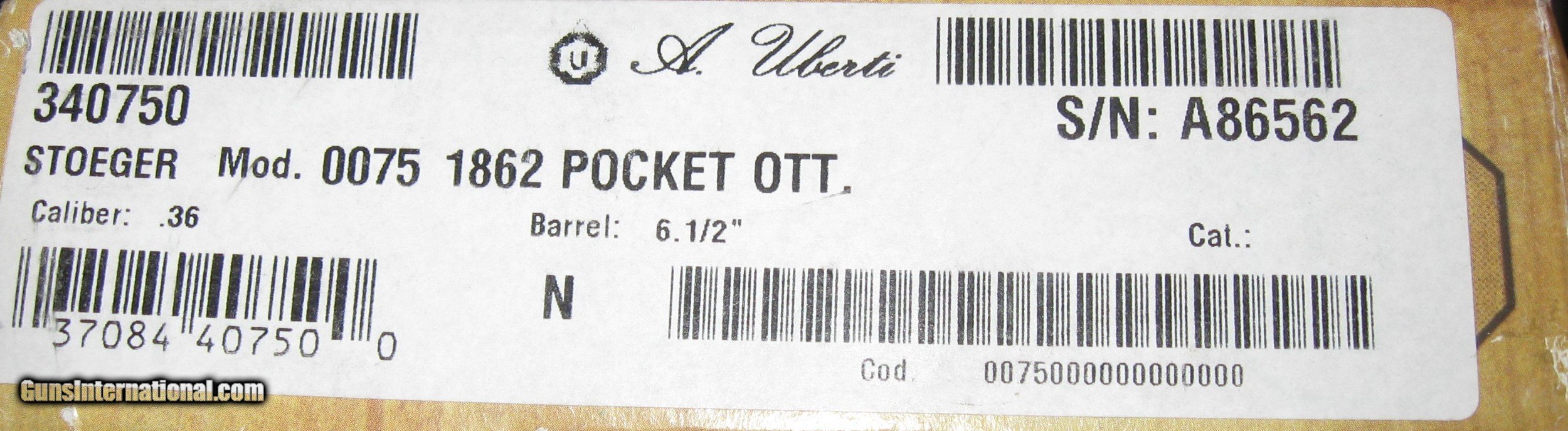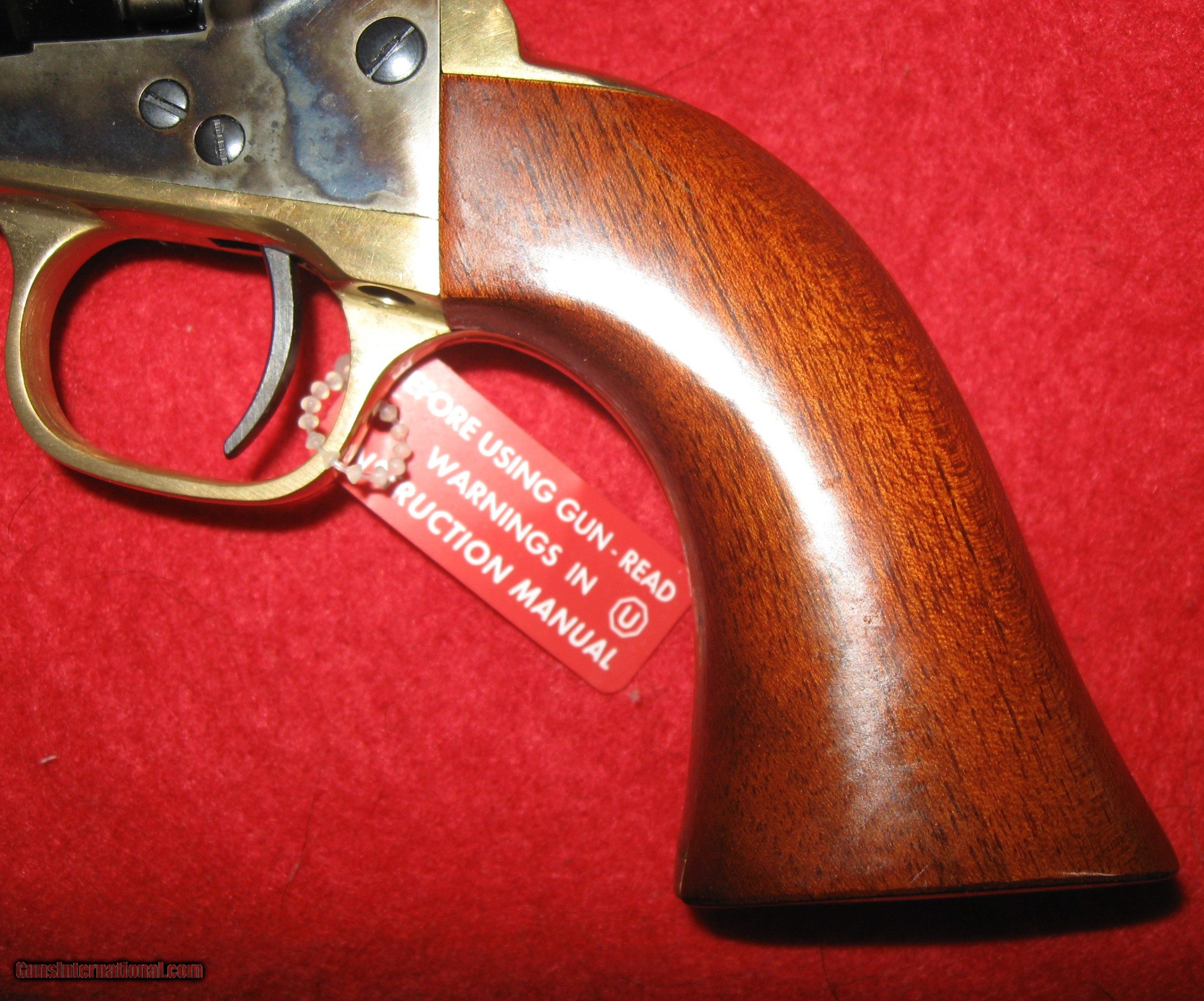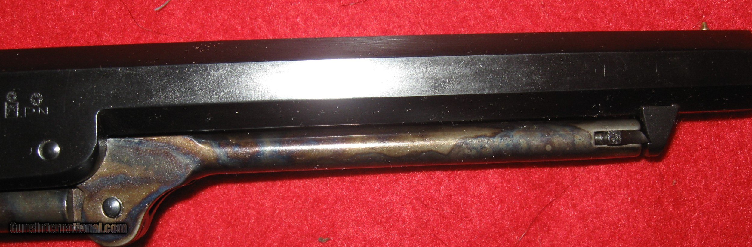 Description: sold pending funds charles turbyfill - 8-6-21 36 CALIBER NOT 31! THIS UBERTI REPLICA OF A 1862 COLT PERCUSSION REVOLVER WAS BUILT FOR STOEGER IMPORT. IT IS SERIAL #A86562 MODEL # 0075. IT IS AS NEW INBOX, UNFIRED. IT COMES WITH IT'S ORIGINAL BOX (SOME BOX DAMAGE) AND PAPERWORK. EXCELLENT CONDITION OVERALL, THE PICTURES SHOW IT'S CONDITION. SHIPPING IS $30 USPS PRIORITY DIRECT FULLY INSURED. PROOF OF 21 YEARS OF AGE OR MILITARY ID REQUIRED FOR PURCHASE. SOLD Handgun Caliber: .31 Manufacturer: A UBERTI Model: 1862 Serial Number: A86562 Barrel Length: 6 1/2 Chambers: 5 Condition: EXCELLENT Metal Condition: EXCELLENT Wood Condition: EXCELLENT Bore Condition: EXCELLENT Barrel Type: OCTAGONAL Action: SINGLE ACTION Finish: BLUE/CASE COLOR Sights: OPEN FIXED |