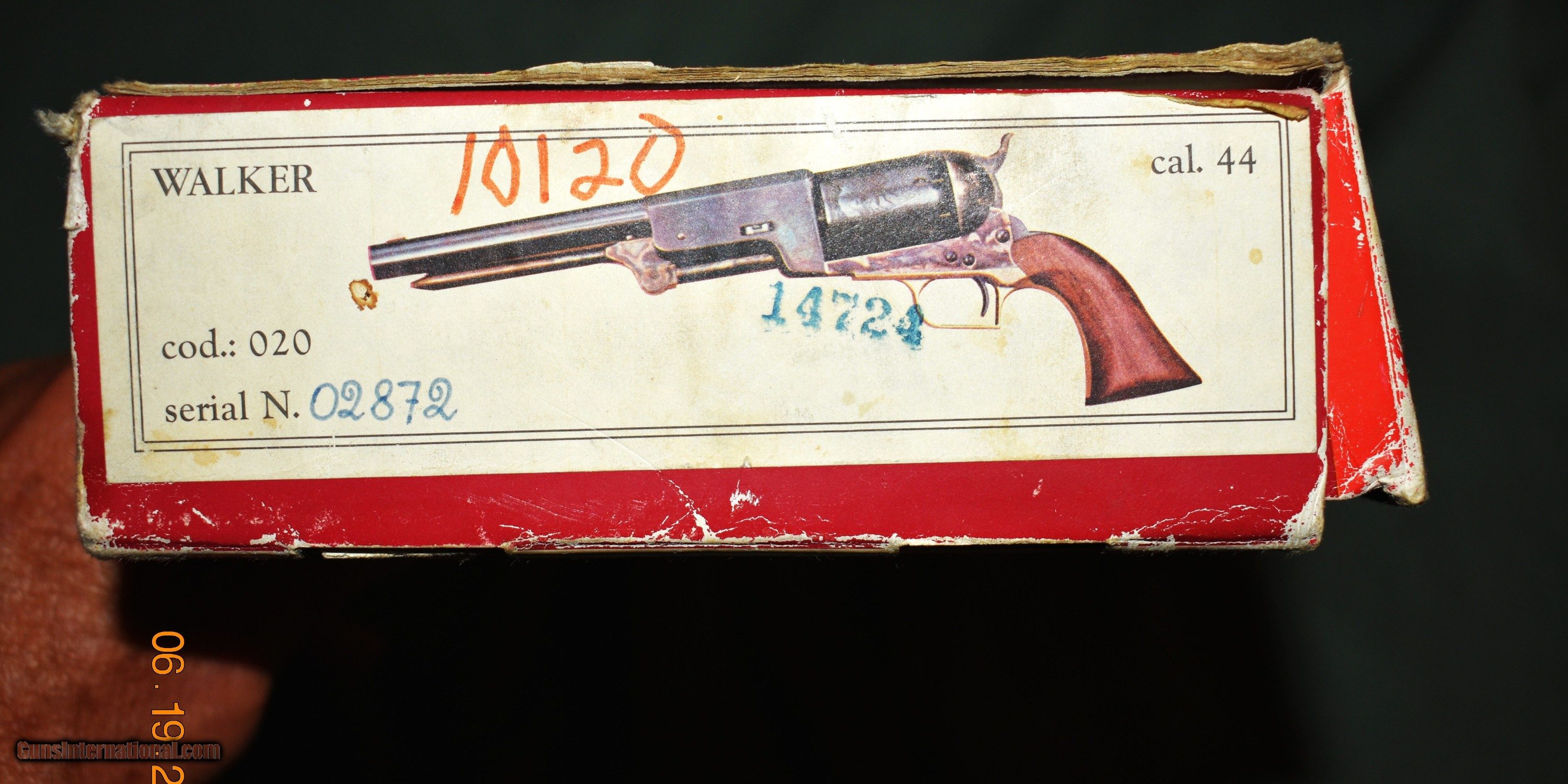 Description: Walker Colt bu Uberti. New and unfired in the original box. A well built replica of the famous 44 caliber revolver made famous by the early Texas Rangers. A fun gun to shoot or great for reinactments. Price includes shipping. SOLD Antique: Yes Handgun Caliber: .44 Manufacturer: Uberti Model: Walker Serial Number: 02872 Barrel Length: 9 Condition: new Metal Condition: new Wood Condition: new Bore Condition: new Action: Percussion Revolver Case: Factory Box |