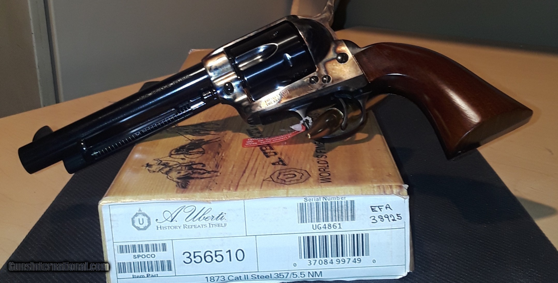 Description: SKU# 356510, NIB case hardened frame.Uberti 1873 Cattleman II. Steel backstrap and triggerguard, 5.5" 38spl/.357 mag SOLD |