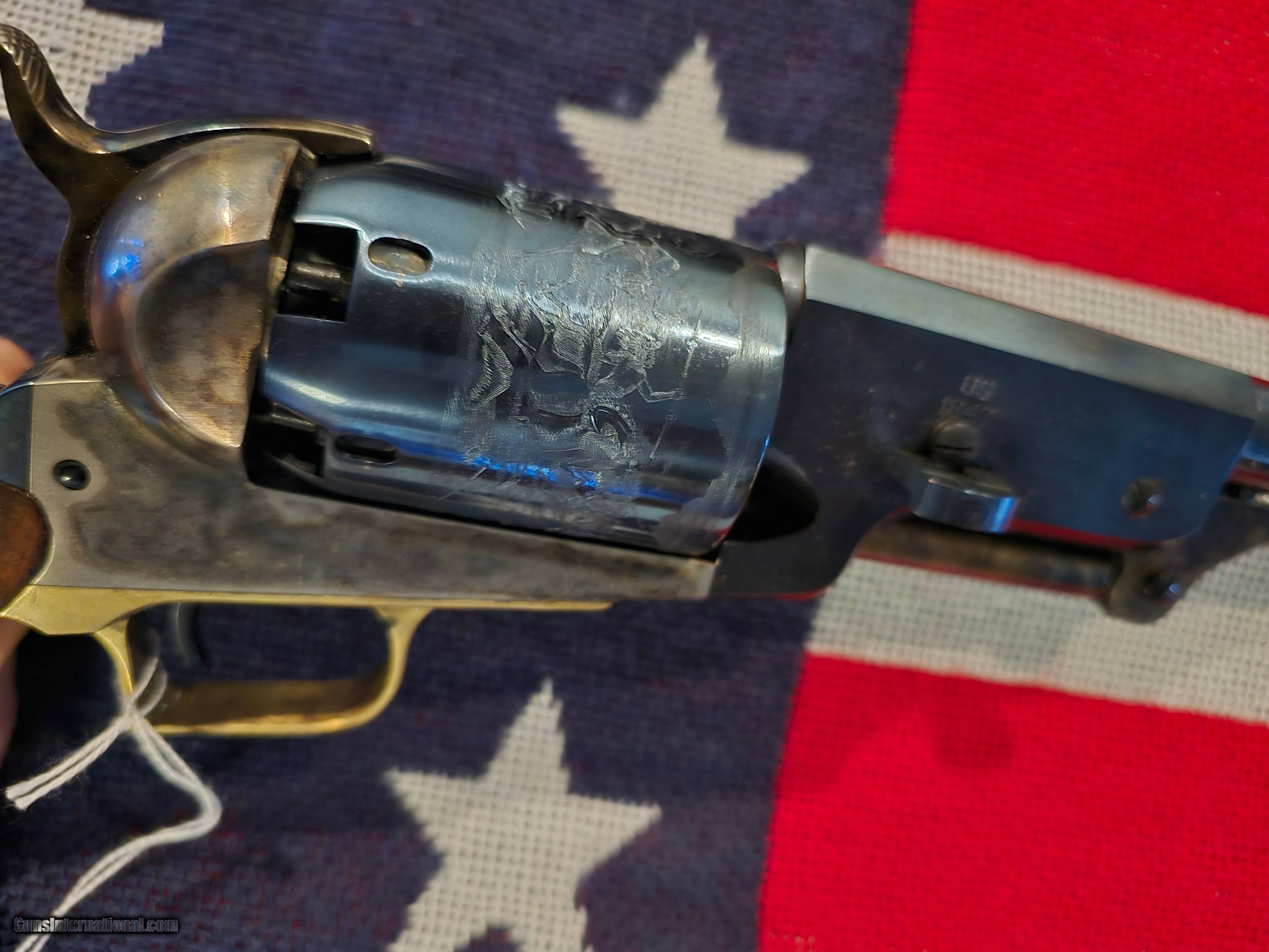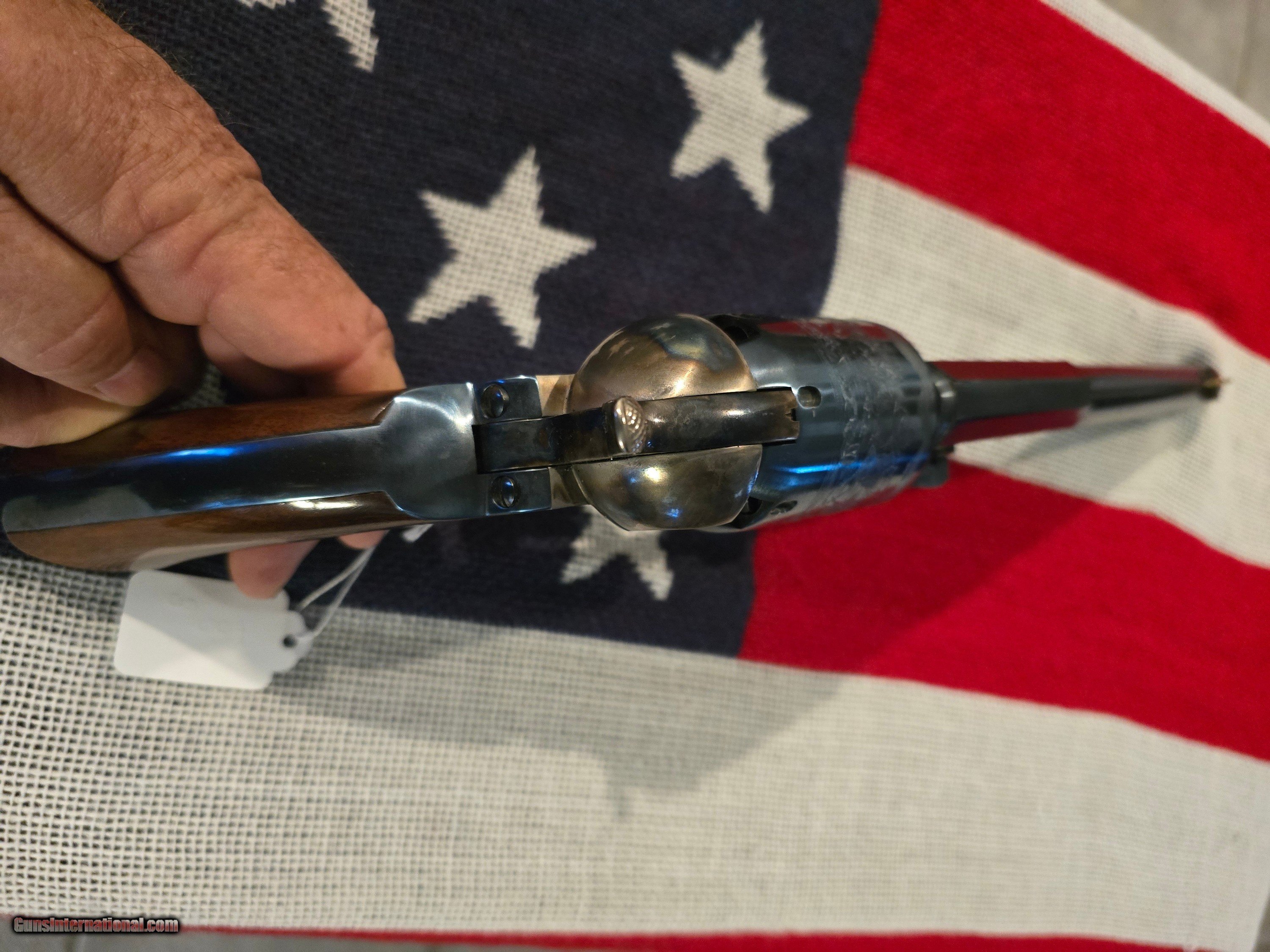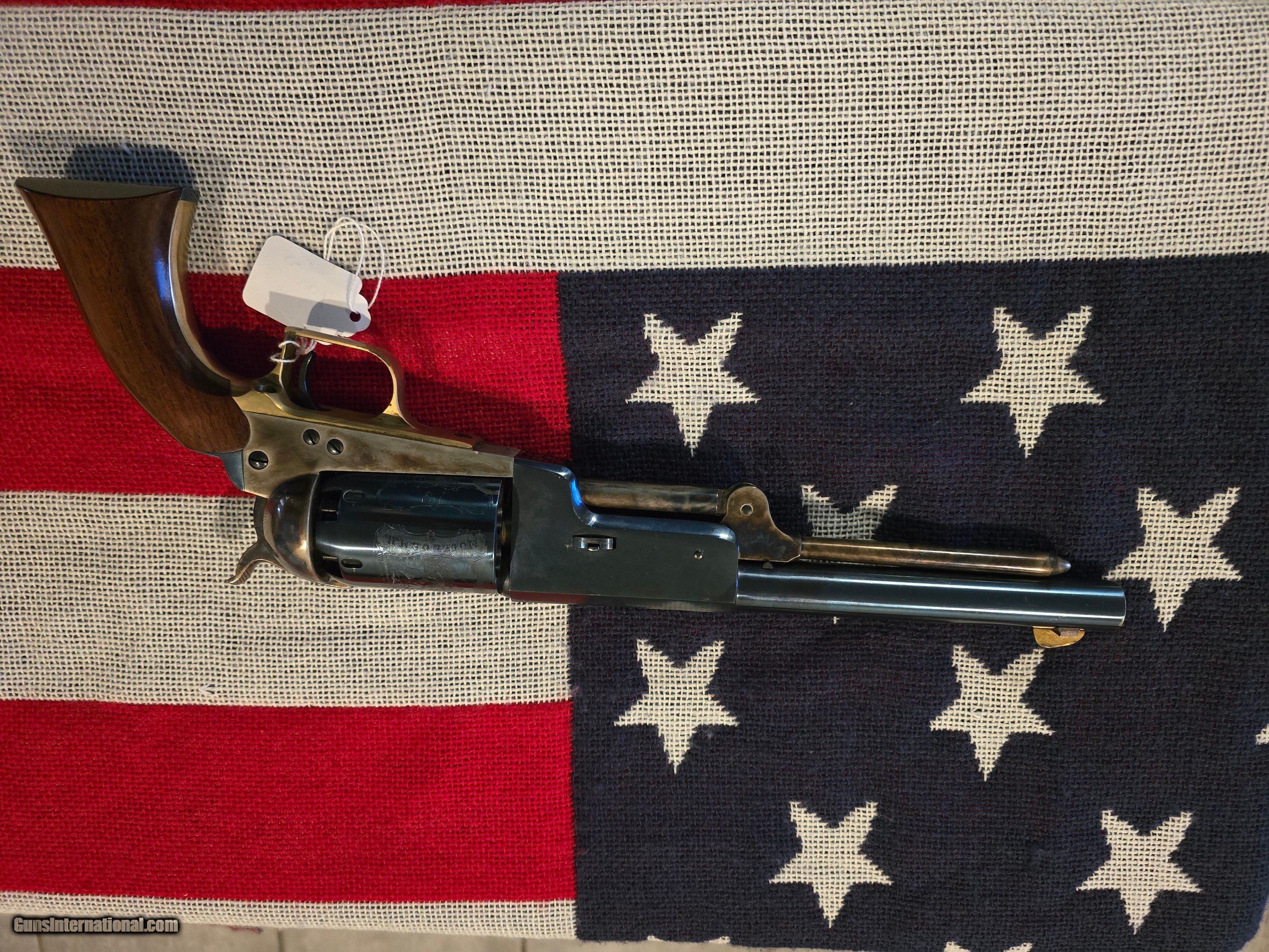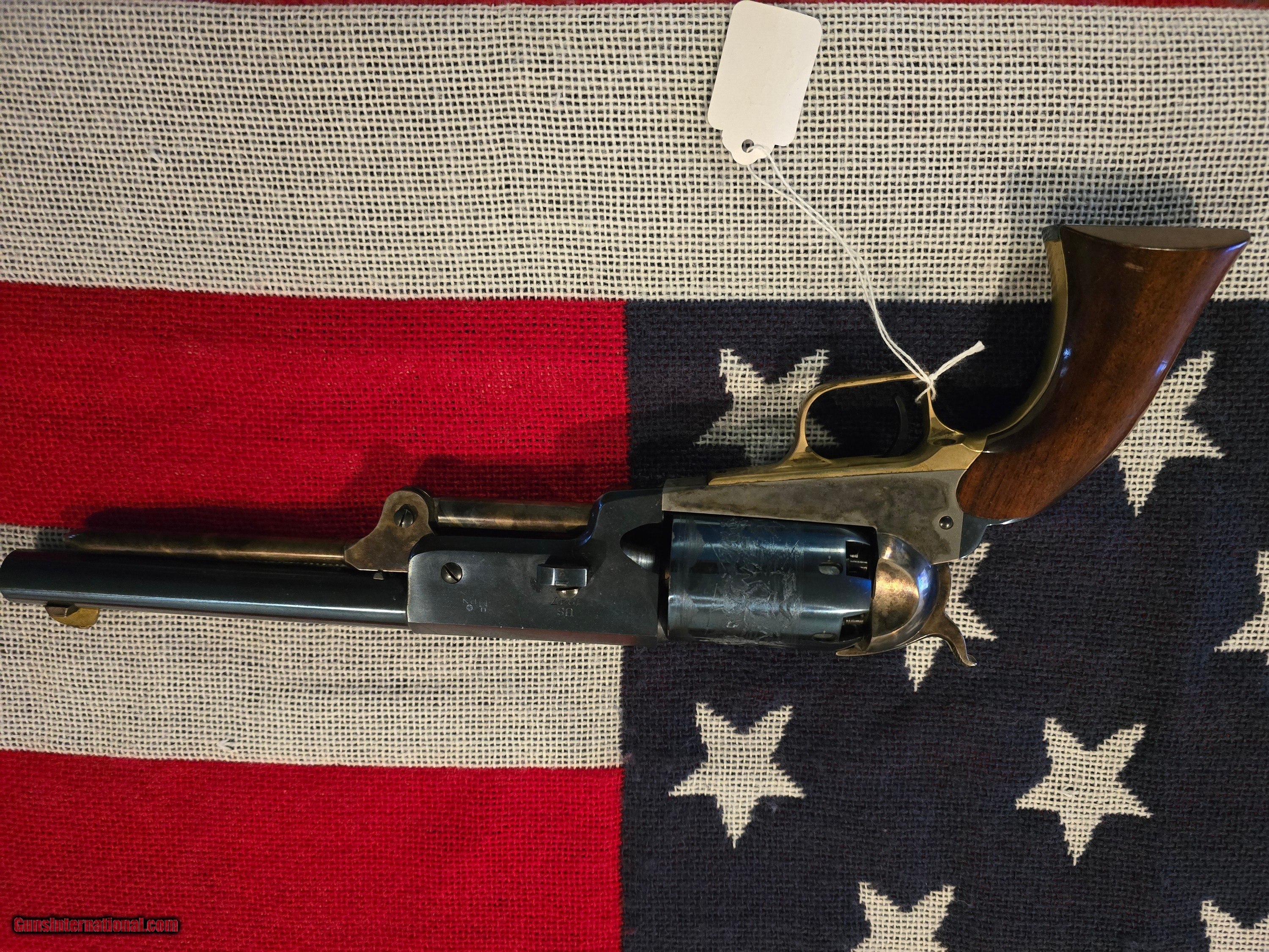 Description: Uberti 1847 Walker The story of this single action black powder revolver began the same day that the Alamo fell in 1836. That’s when Samuel Colt began production of a revolving-cylinder pistol at his Paterson, New Jersey, factory. The 1847 Walker revolver was enthusiastically received by the Rangers of the newly independent Republic of Texas. The reputation earned by the formidable 1847 Walker revolver is what ensured gunmaker Samuel Colt’s success. SOLD Handgun Caliber: .44 Manufacturer: UBERTI WALKER Model: US 1847 Barrel Length: 9 Condition: GREAT Metal Condition: GREAT Wood Condition: GREAT Bore Condition: GREAT |