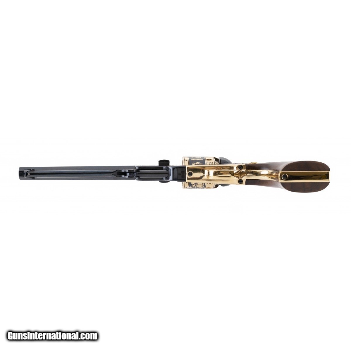 Description: " Robert E. Lee Commemorative revolver embellished with gold scroll motifs on barrel, frame and loading lever. Cylinder has various scenes done in gold. Left grip has a medallion of Robert inserted near frame. Excellent condition with presentation case and accessories. SOLD |