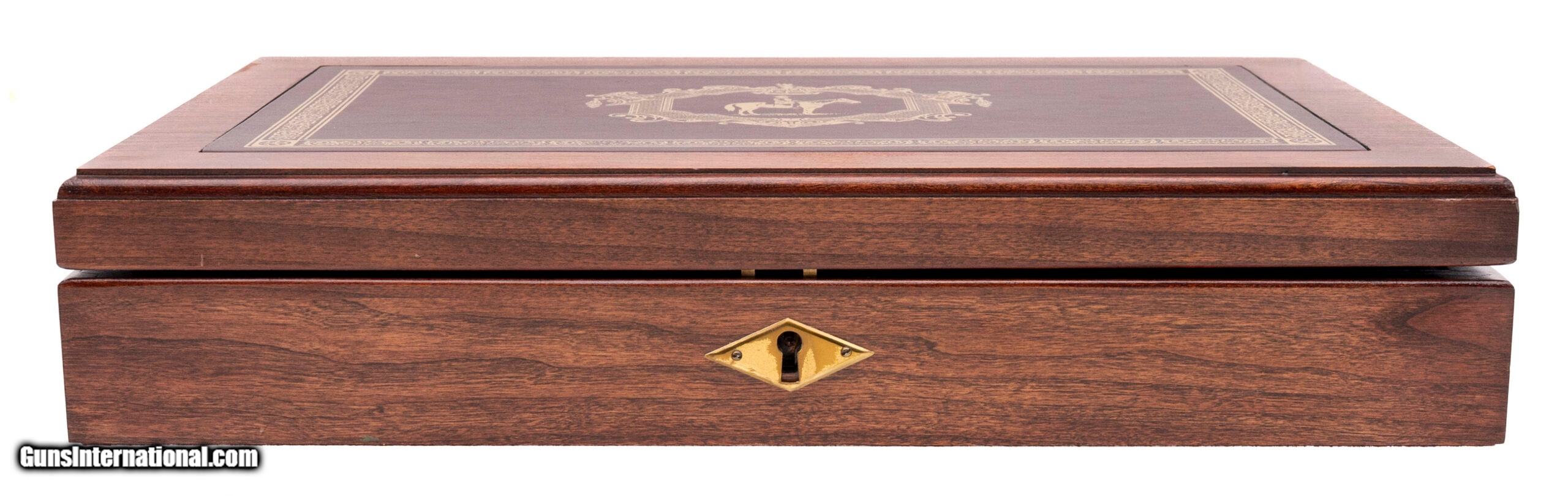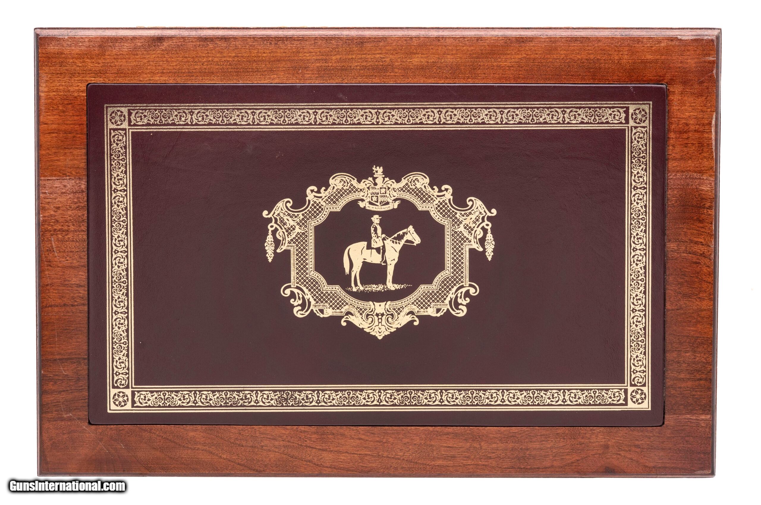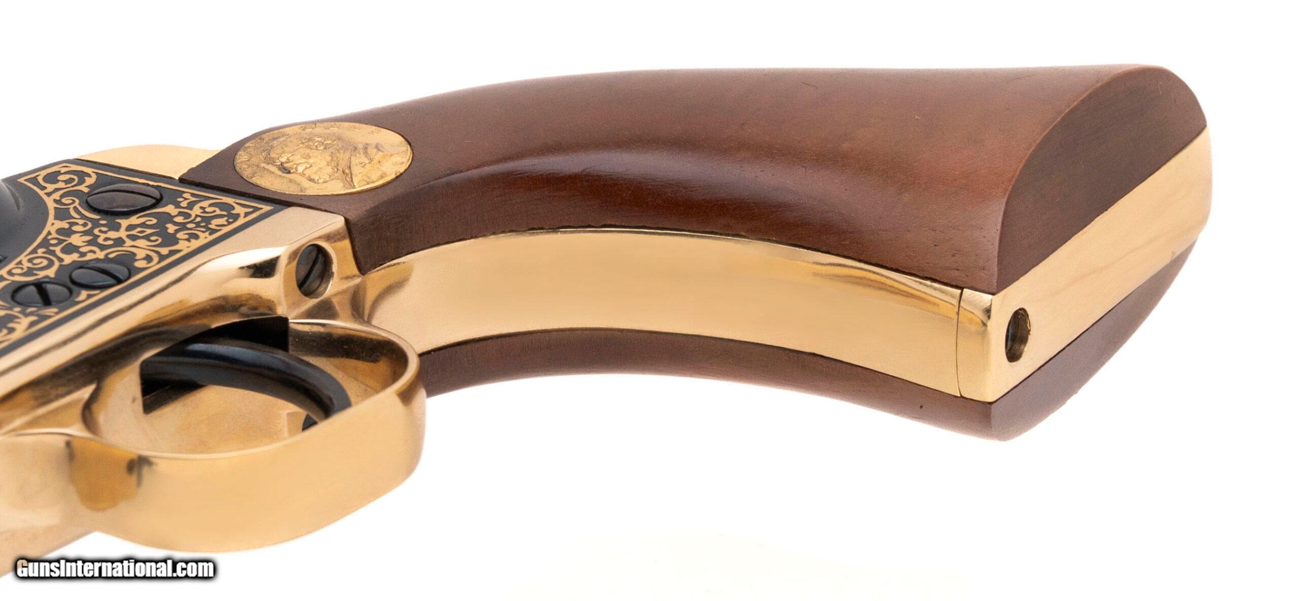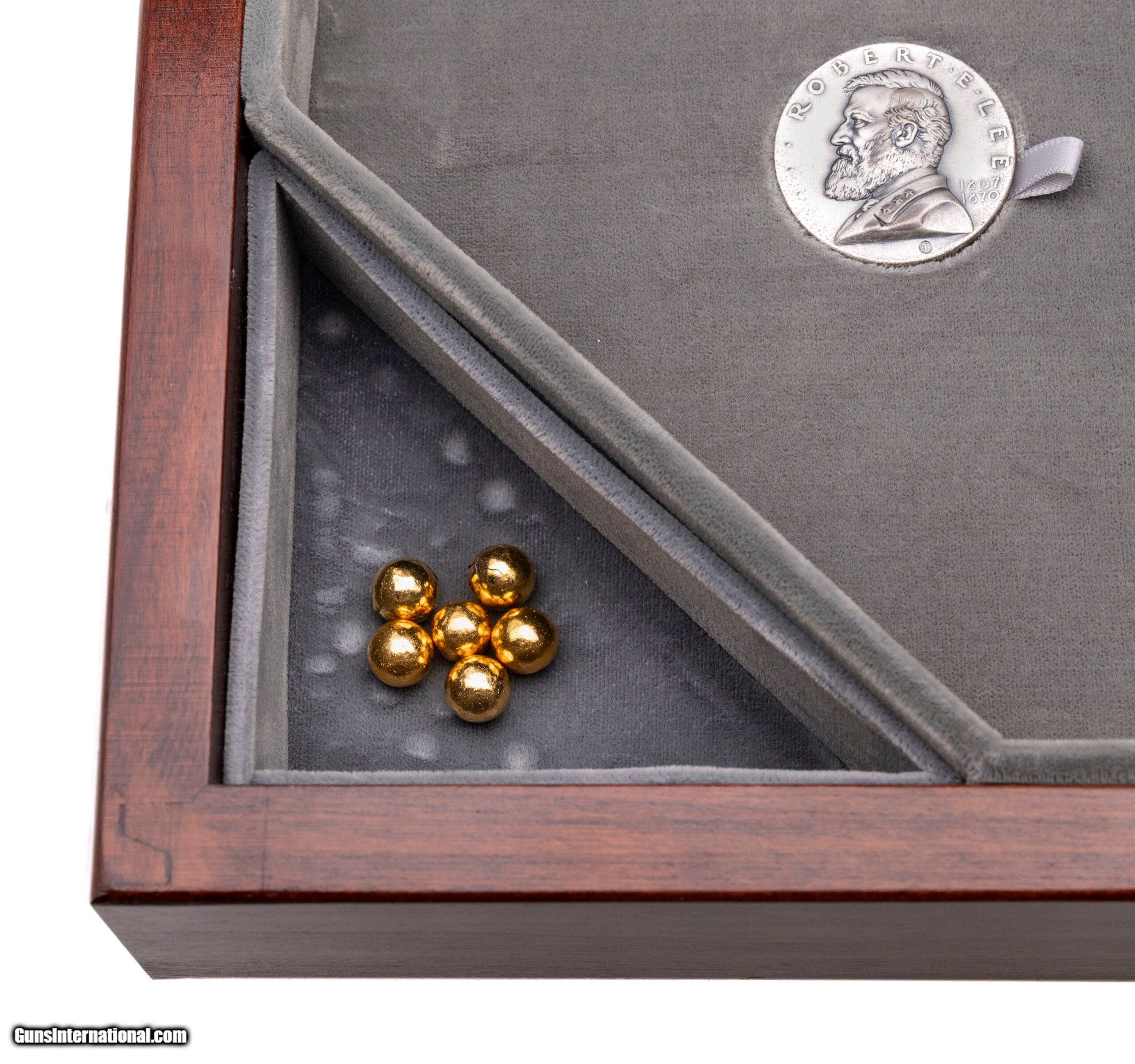 Description: "Made circa 1980's. Robert E. Lee Commemorative black powder 1851 Navy revolver embellished with gold scroll and scenes. Excellent condition with presentation case, accessories and papers. SOLD |