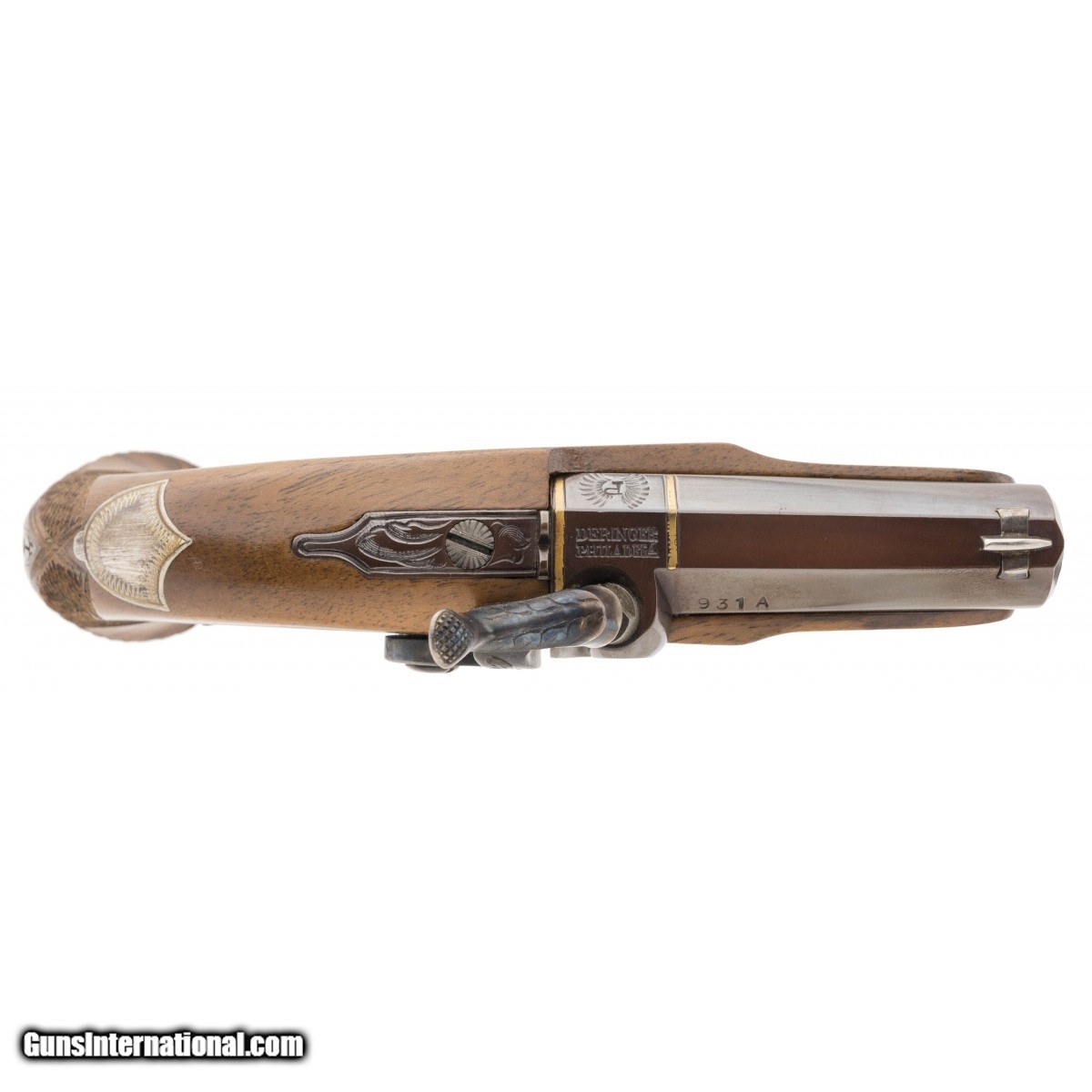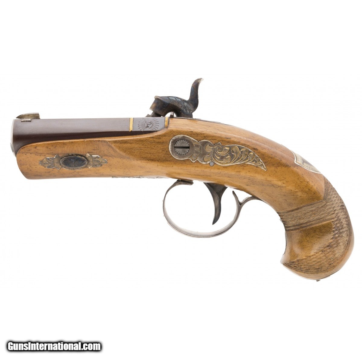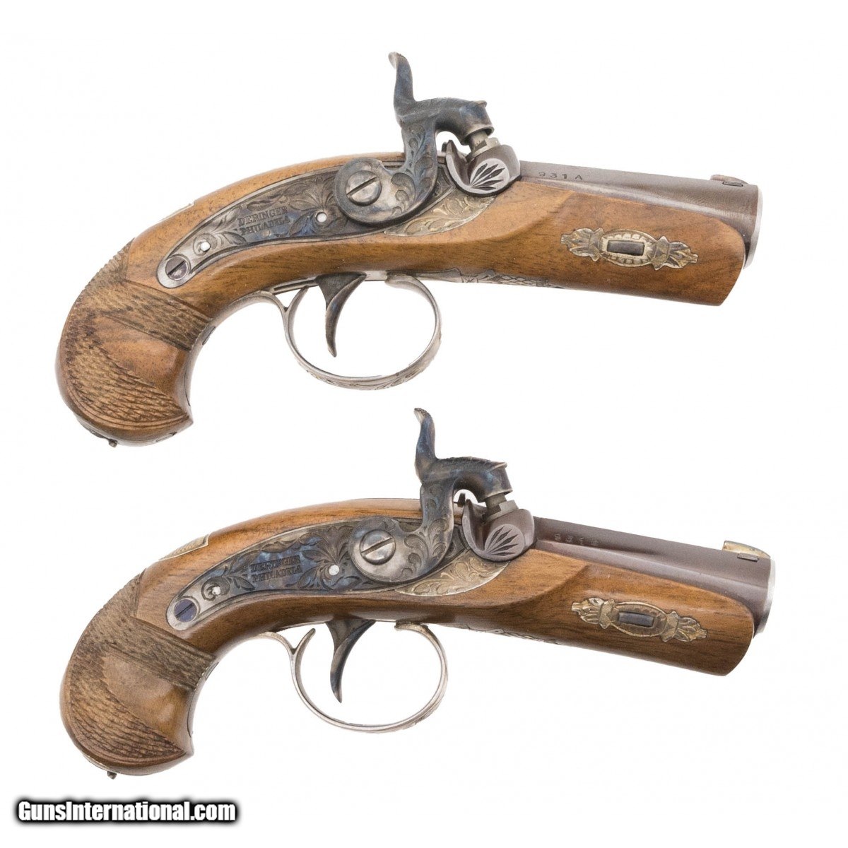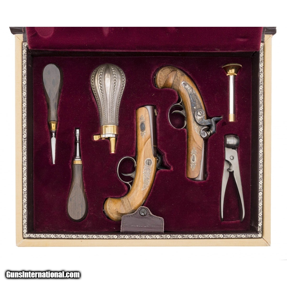 Description: " Beautiful pair of Commemorative Henry Deringers by the US Historical Society. Small parts are scroll engraved. Lock and hammer are case colored. Comes with a case made to look like a book and accessories. SOLD |