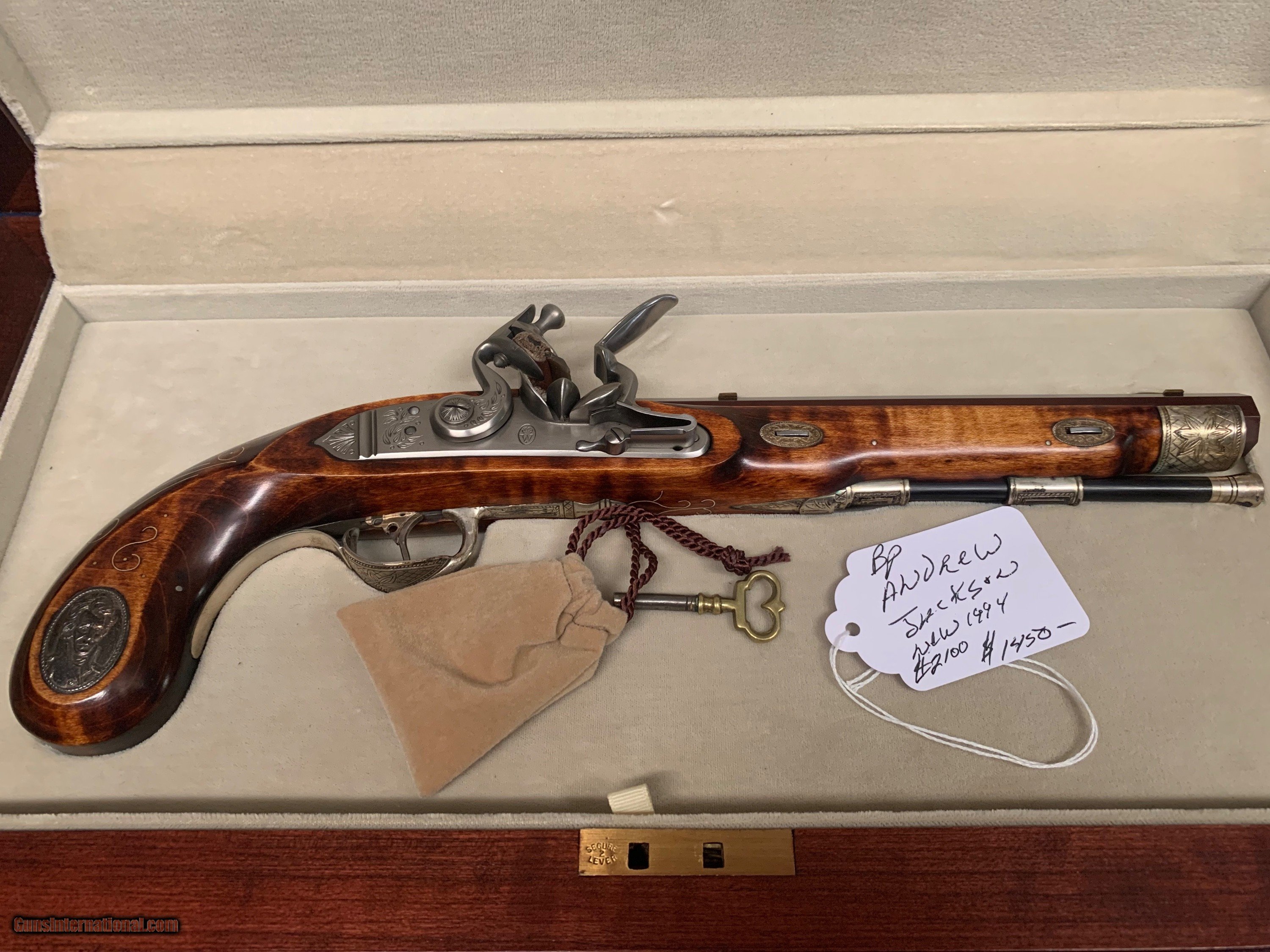 Description: US Historical Society Andrew Jackson 45 cal. Flint Pistol - New in Box 3 day inspection Shipping is $75 Priority Mail - Insurance optional Certified Checks or Money Order Ohio residents add 7.25% tax No California sales FFL required SOLD |