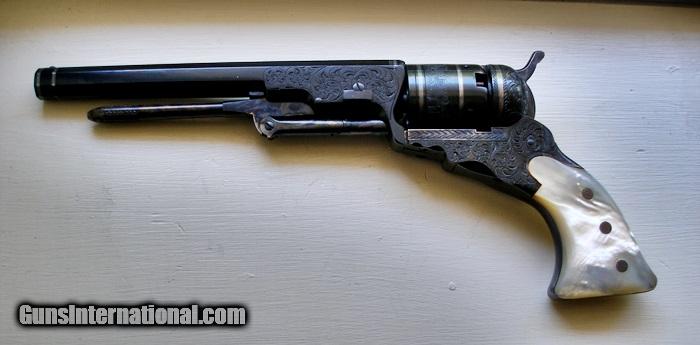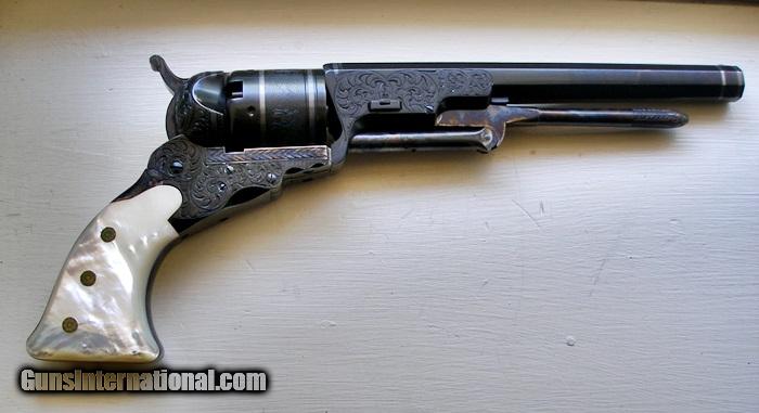 Description: US HISTORICAL SOCIETY PATERSON 36 CAL REVOLVER, TEXAS EDITION, BEAUTIFUL HAND ENGRAVED SCROLL, 7 1/2" OCTAGON BBL, HIDDEN FOLDING TRIGGER, MOTHER OF PEARL GRIP, BLADE FRONT, WALNUT DISPLAY CASE WITH ACCESSORIES, AS NEW! SOLD Manufacturer: US HISTORICAL SOCIETY Model: PATERSON REVOLVER- TEXAS EDITION Caliber Info: 36 CAL Condition: AS NEW Barrels: 7 1/2" Barrel Type: OCTAGON BBL Triggers: HIDDEN FOLDING TRIGGER Stock: MOTHER OF PEARL GRIP Sights: BLADE FRONT Engraving: BEAUTIFUL HAND ENGRAVED SCROLL Case: WALNUT DISPLAY CASE WITH ACCESSORIES Item Location: SALT POINT, NY 12578 |