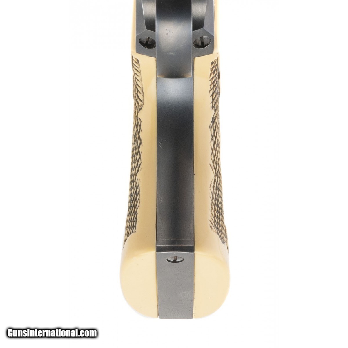 Description: " 4 3/4"" sixgun with matte finish. Has checkered faux ivory grips. Excellent condition. SOLD |