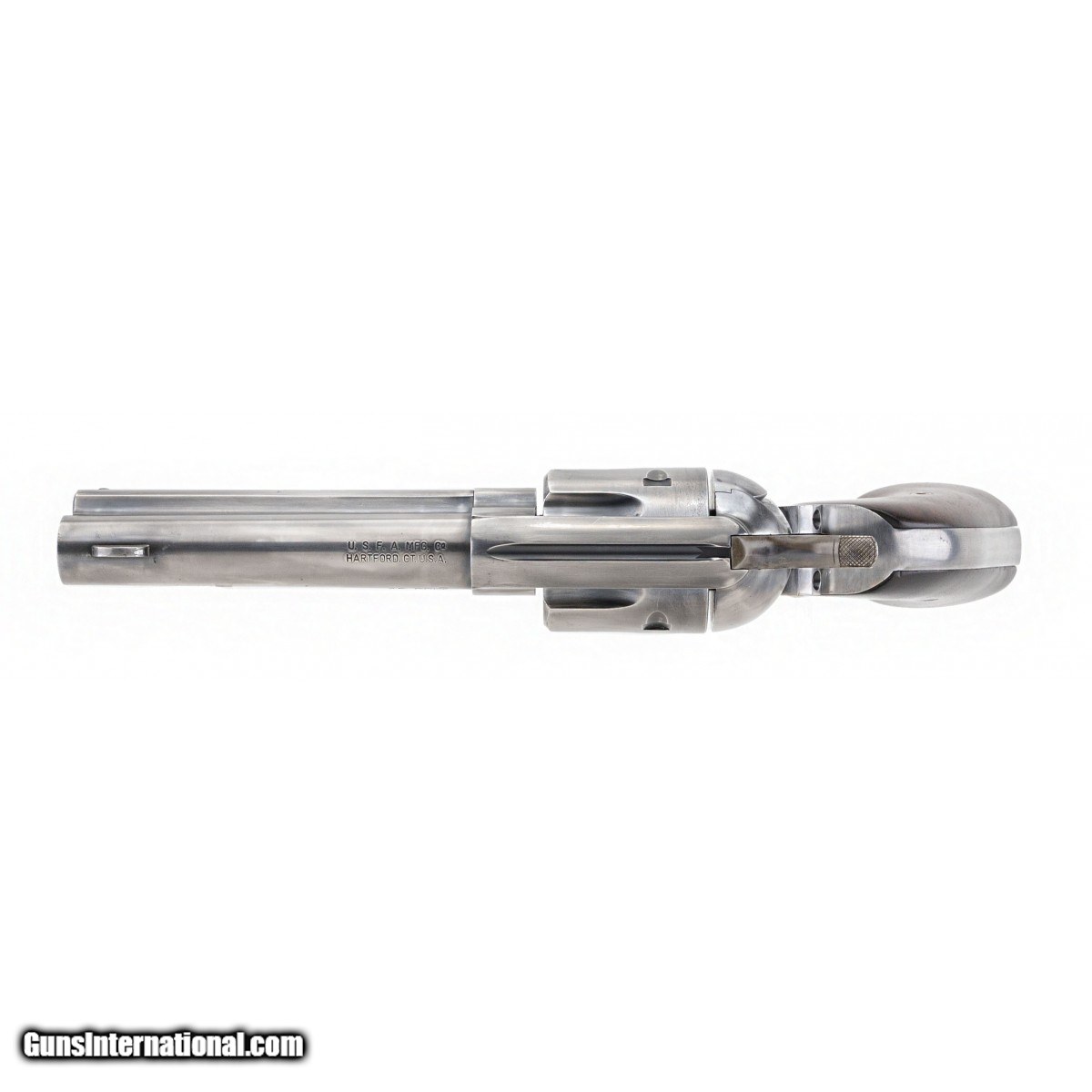 Description: " ""Gunslinger"" model with 4 3/4"" barrel, ""aged"" finish and walnut grips. Excellent condition with box. SOLD |