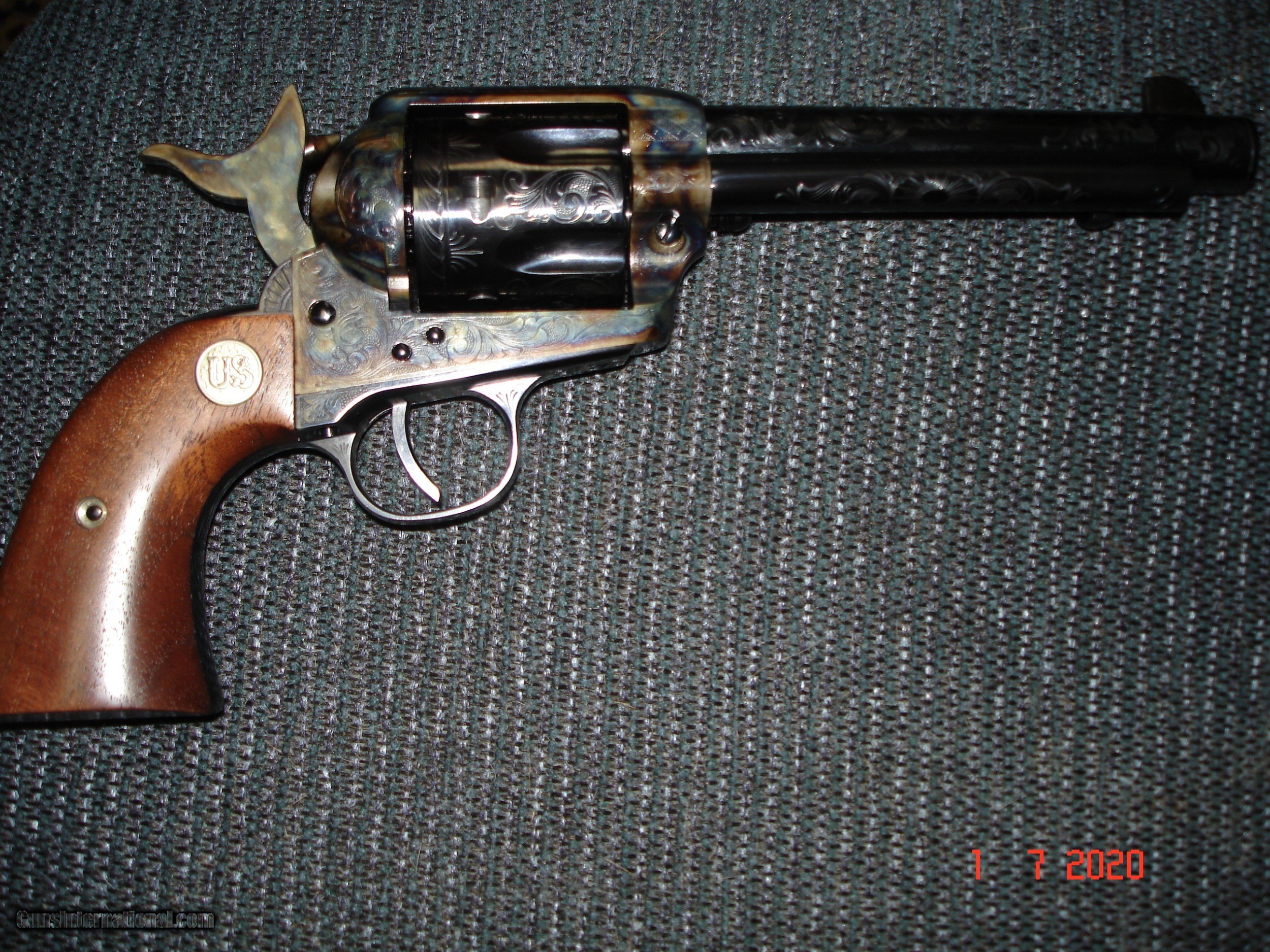 Rare USFA 15th. Anniversary edition 1 of 15 .45 Colt Factory Engraved Full Coverage 5 1/2"BBl.Blue & Case Walnut Stocks NIB #4